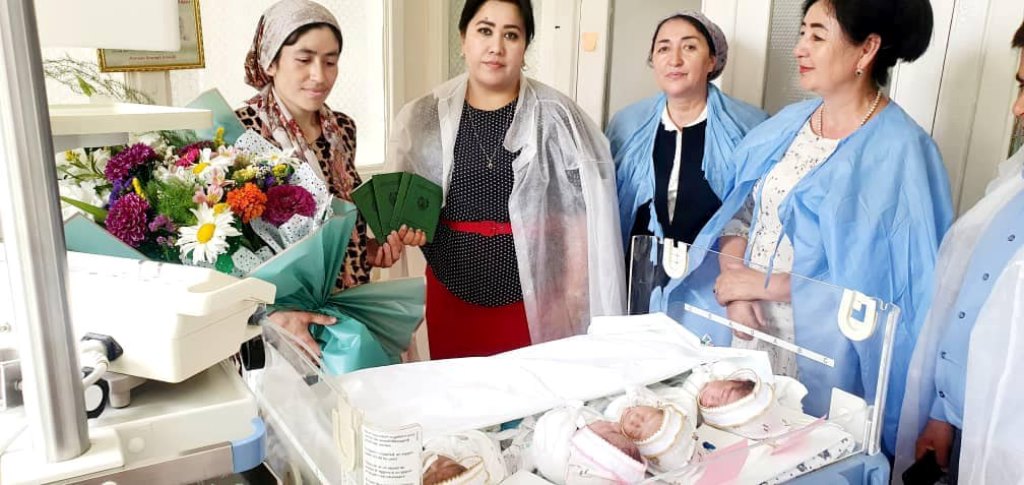 Мадина Бобоиён, муовини раиси шаҳри Исфара дар суҳбат ба “Азия-Плюс” гуфт, рӯзи 22-уми июн ба аёдати чаҳоргоникҳо ба таваллудхонаи шаҳри Хуҷанд омадаанд ва ба модарашон шаҳодатномаи таваллуд, як миқдор маблағи пулӣ ва тӯҳфаҳо ҳадя карданд. Ӯ гуфт, ҳангоми аз беморхона рухсат шудан ҳукумати Исфара навзодон ва хонаводаи ӯро зери назорат мегирад ва боз кӯмакҳо мерасонанд.
