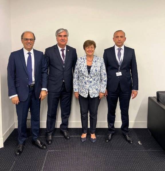 Тавре ки шуъбаи матбуоти Бонки миллии Тоҷикистон (БМТ) хабар медиҳад, дар вохӯрии роҳбари ин ниҳод Ҳоким Холиқзода ва вазири молияи ҷумҳурӣ Файзиддин Қаҳҳорзода бо директори ХБА Кристалина Георгиева дар шаҳри Бад-Рагази Швейтсария рӯзи 3 июл дар доираи Ҷаласаҳои солонаи Гурӯҳи Электорати Хазинаи имкони дастгирии молиявӣ “барои амалисозии барномаи нави ислоҳоти иқтисодӣ” баррасӣ шуд.