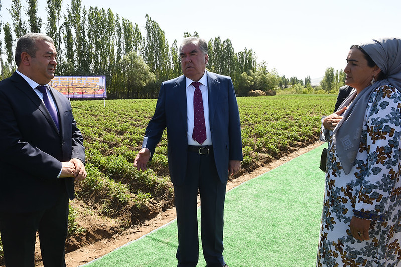 Ба сарвари давлат иттилоъ доданд, ки дар хоҷагӣ 1 гектар ғаллаи баҳорӣ, 1 гектар ҷав, 1 гектар пиёз, 1 гектар помидор, 1 гектар картошка, 3 гектар боғ ва дар 4 гектар юнучқа барои хӯроки чорво ва тухмӣ кишт карда шудааст.