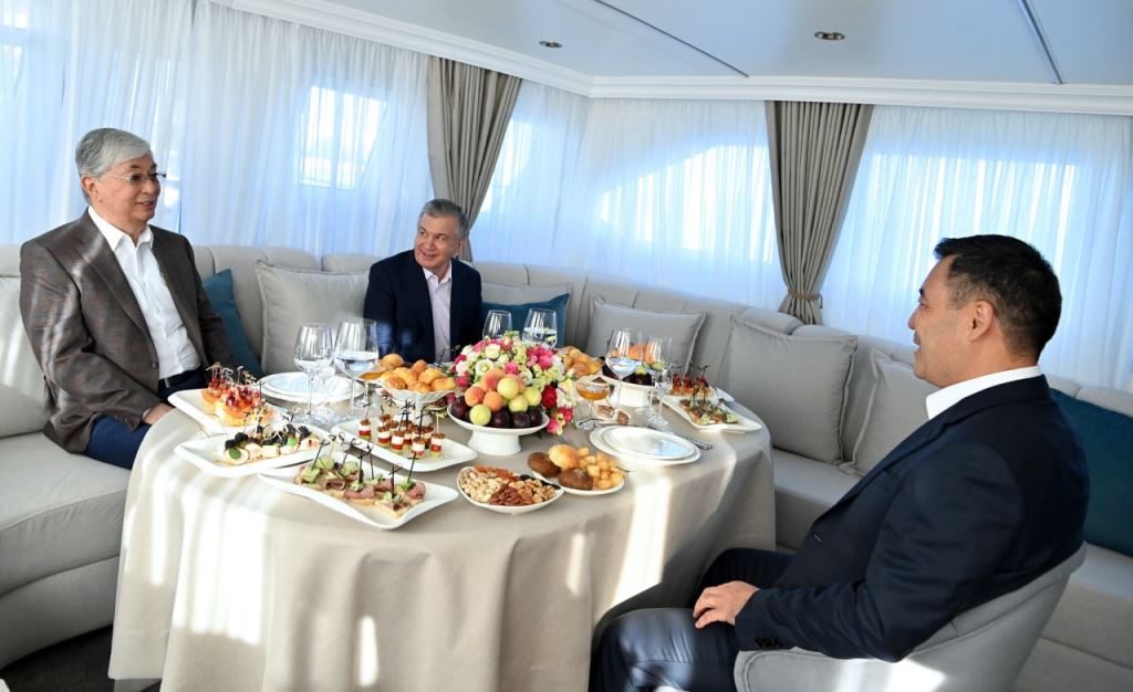 Раҳбарони се кишвар дар фазои ғайрирасмӣ сӯҳбат карда, бо қаиқ (теплоход) дар Иссиқкӯл сайругашт карданд.