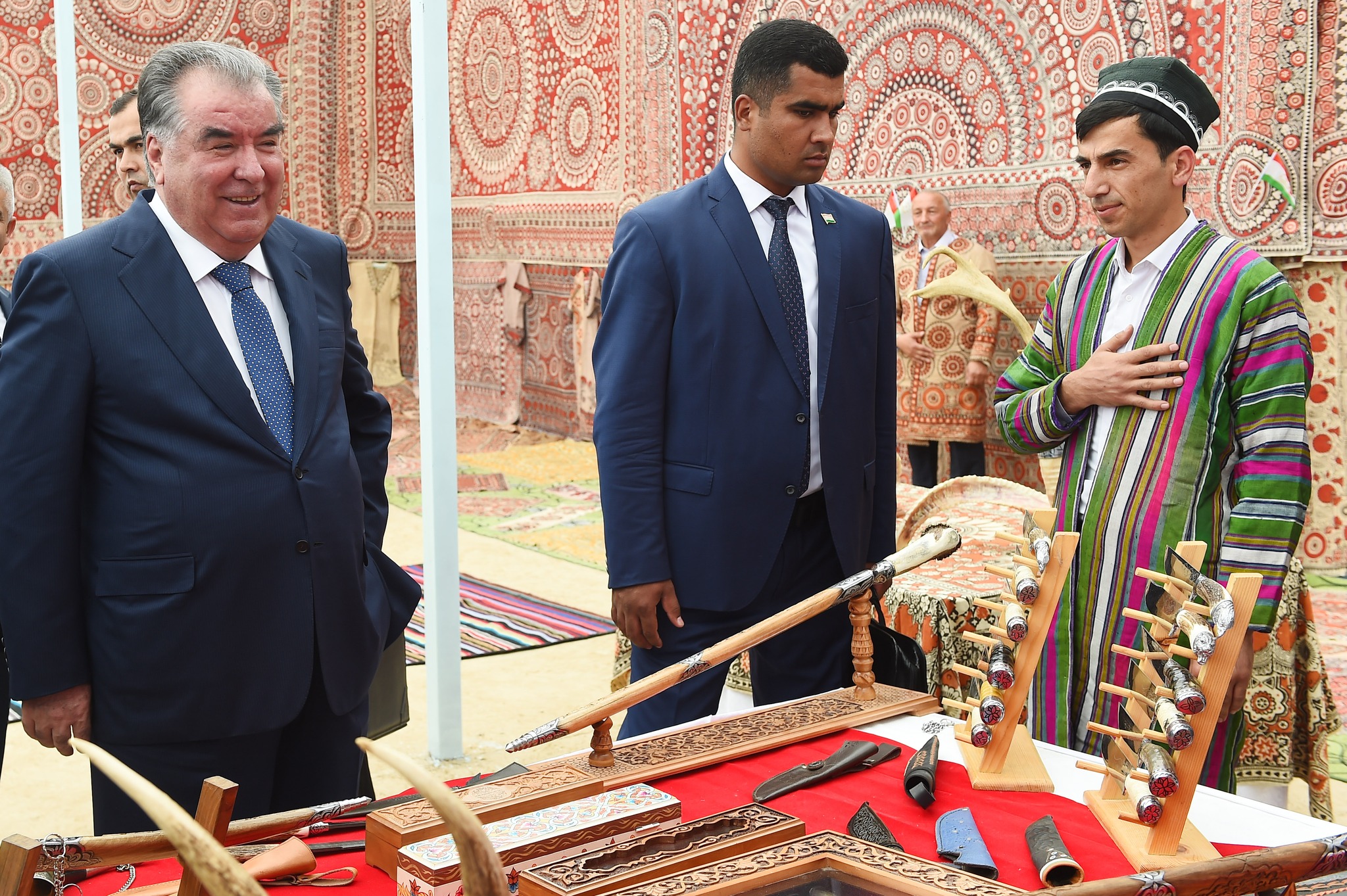 Пас аз ифтитоҳи Коллеҷ Эмомалӣ Раҳмон аз намоишгоҳи дастовардҳои сокинони Истаравшан, аз ҷумла гӯшаи маҳсули ҳунарҳои дастӣ ва гӯшаи маҳсулоти кишоварзӣ боздид кард.