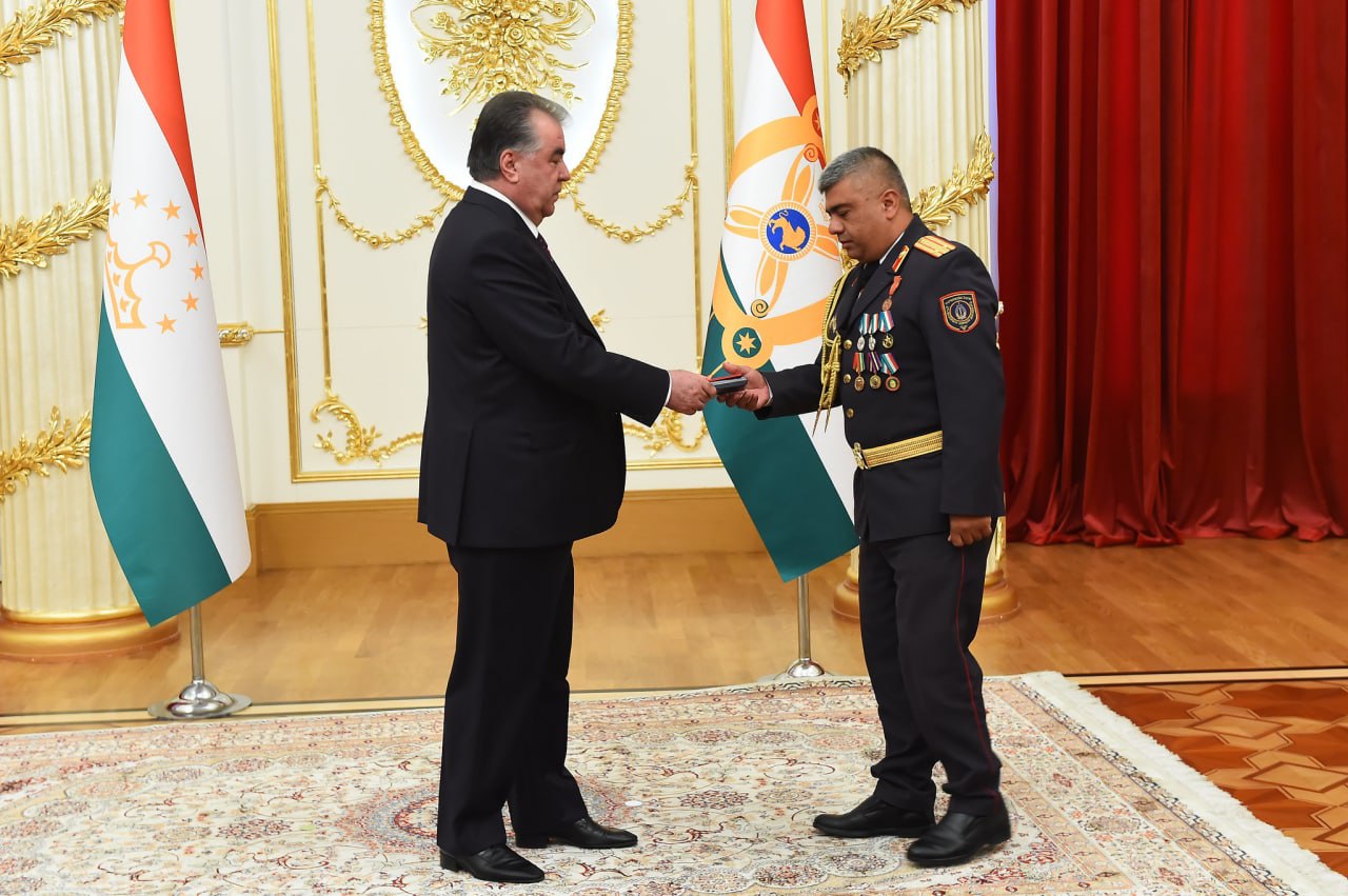 Ба иттилои манбаъ, аз ҷониби Эмомалӣ Раҳмон бо мукофотҳои давлатӣ ва рутбаҳои навбатии олии ҳарбӣ сарфароз гардонидани хизматчиёни ҳарбӣ нишонаи қадршиносӣ аз хизмати содиқона, далериву ҷасорат ва ҳушёриву шуҷоати онҳо дар ҷодаи таъмин намудани сулҳу оромӣ, амнияту осоиш ва қонунияту тартибот дар кишвар мебошад.