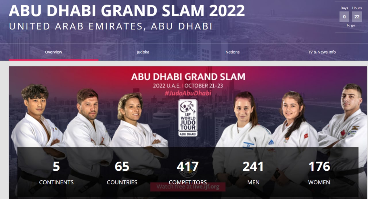Пагоҳ, 21-уми октябр, мусобиқаи байналмилалии “Abu Dhabi Grand Slam 2022” оғоз мешавад ва дар он 11 варзишгари тоҷик иштирок меварзад. Дар ин бора сомонаи Федератсияи байналмилалии ҷудо хабар медиҳад.
