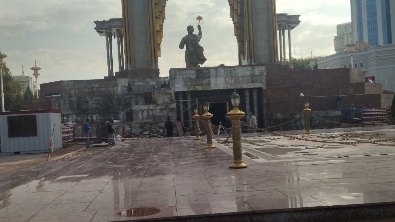 Чанд рӯз аст, ки дар маҷмааи муҷассамаи “Исмоилӣ Сомонӣ”-и шаҳрии Душанбе устоҳои зиёде ба таъмир машғуланд. Онҳо сангҳои “гранити”-и гирди муҷассамаро канда, ҳамчунин дар дохили осорхонаи зери муҷассама машғули коранд.