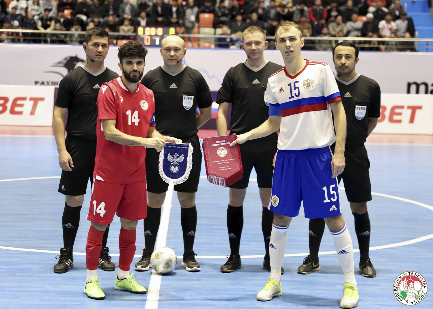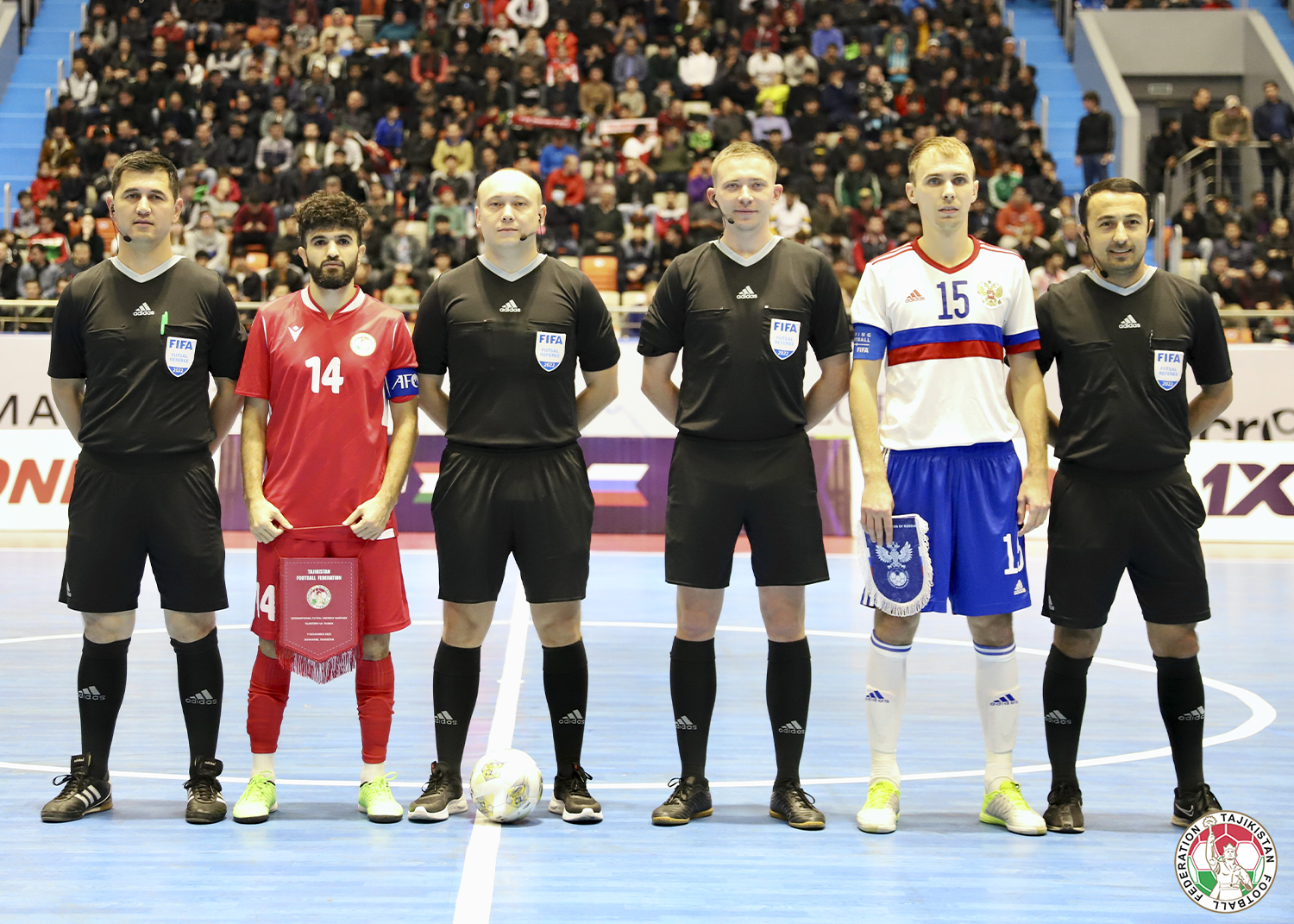 Бозии дӯстона миёни тимҳои миллии футзали Тоҷикистон ва Русияро довари ФИФА Анатолий Рубаков ва Никита Афиногенов, ҳарду аз Ӯзбекистон, ҳакамӣ карданд. Доварони эҳтиётӣ довари ФИФА аз Тоҷикистон Беҳрӯз Муртазоев ва ҳамватанаш Суҳроб Сатторов буданд.