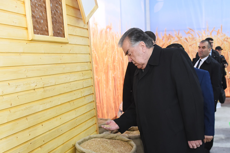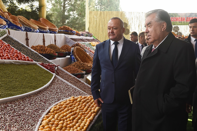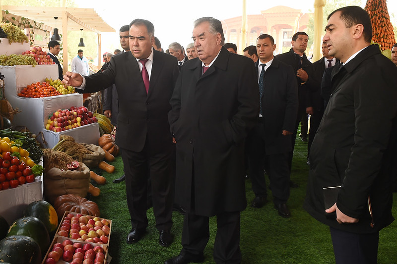 Дар ноҳияи Бобоҷон Ғафуров президент инчунин аз намоишгоҳи маҳсулоти кишоварзӣ боздид намуд.