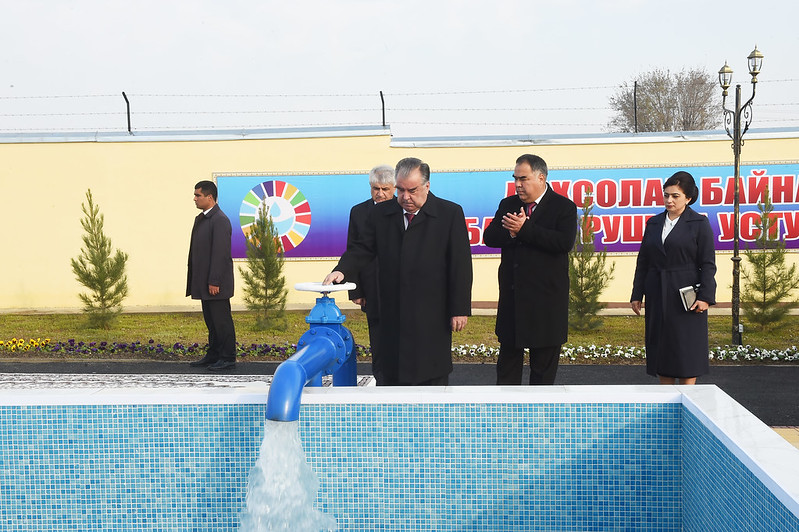 Дар идома Эмомалӣ Раҳмон дар шаҳри Бӯстон обанбори шабакаи оби нӯшокиро бо ғунҷоиши 1000 метри мукааб барои таъмини беш аз 5 ҳазор нафар аҳолии шаҳр мавриди истифода қарор дод.