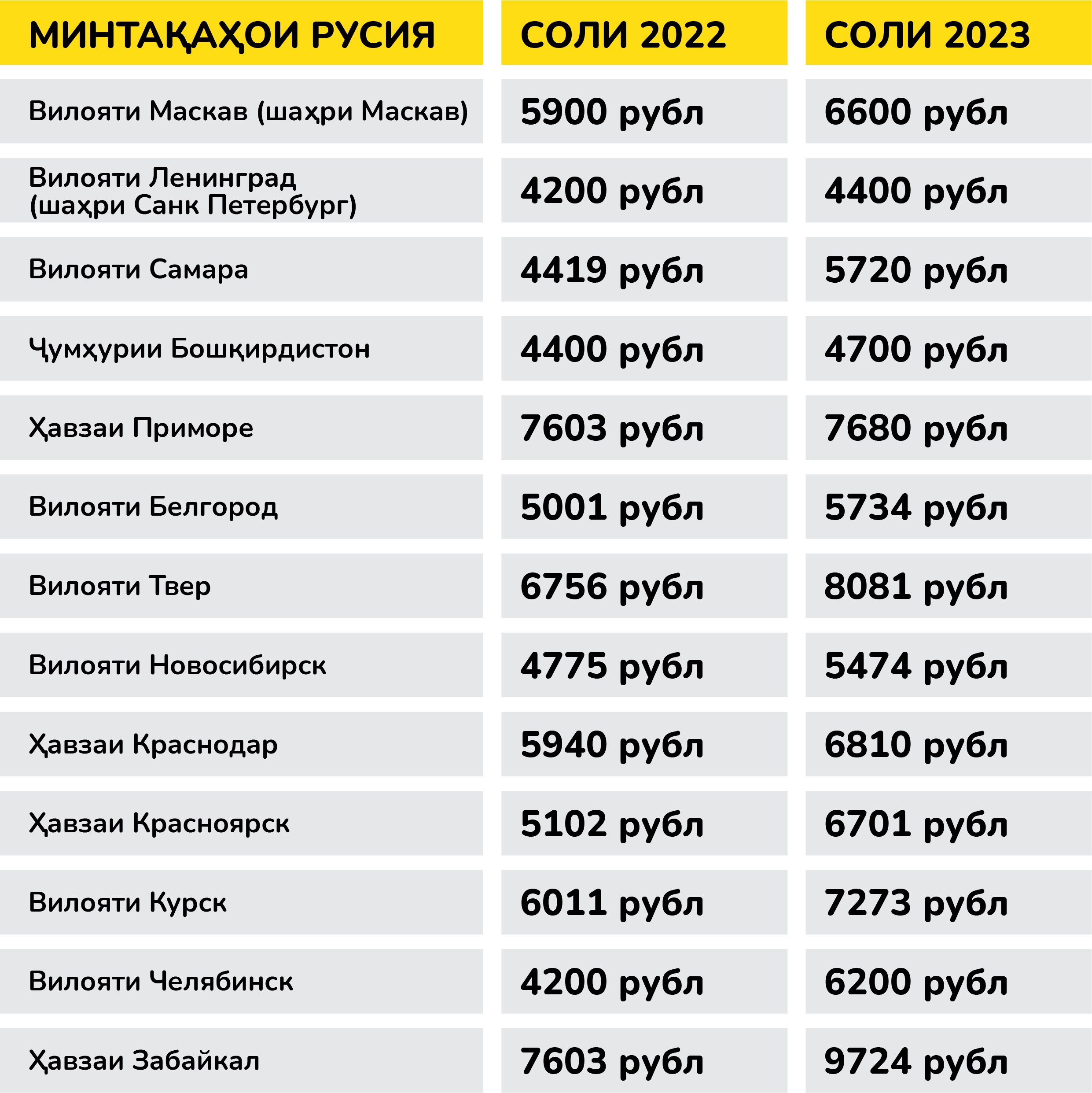 Метавонед бо тағйирот дар нархи патент барои муҳоҷирони корӣ дар соли 2023 дар манотиқи дигари Русия дар ин пайванд шинос шавед. Ҳамчунин, метавонед нархи патентро дар соли 2022 дар ин пайванд пайдо кунед.