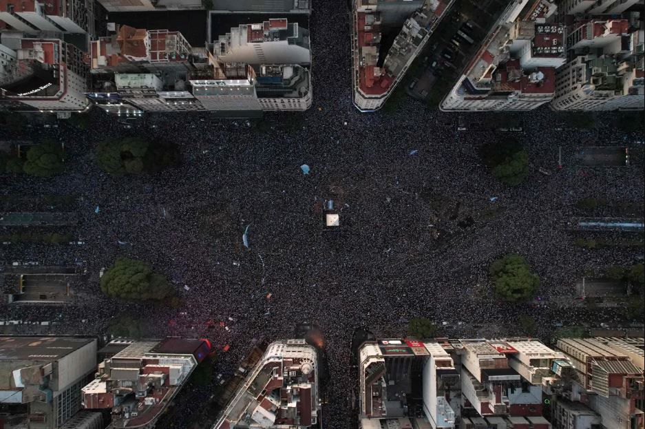 Садҳо ҳазор нафар сокинони Арентина ба кӯчаву хиёбонҳо рехтанд, то ки пирӯзии тими миллиашонро, ки ҳанӯз аз замони бозии Марадона онро интизорӣ доштанд, ҷашн гиранд. Таваҷҷуҳ кунед.