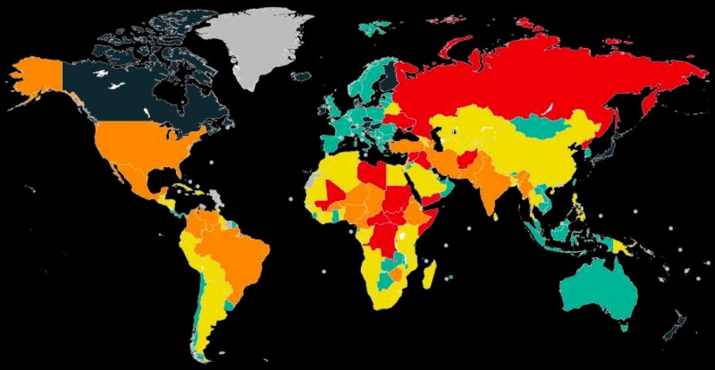 Дар даҳгонаи ноамтарин кишварҳои ҷаҳон Яман, Сурия, Русия, Судони Ҷанубӣ, ҶД Конго, Ироқ, Сомалӣ, ҶМ Африқо ва Судон шомил шудаанд.