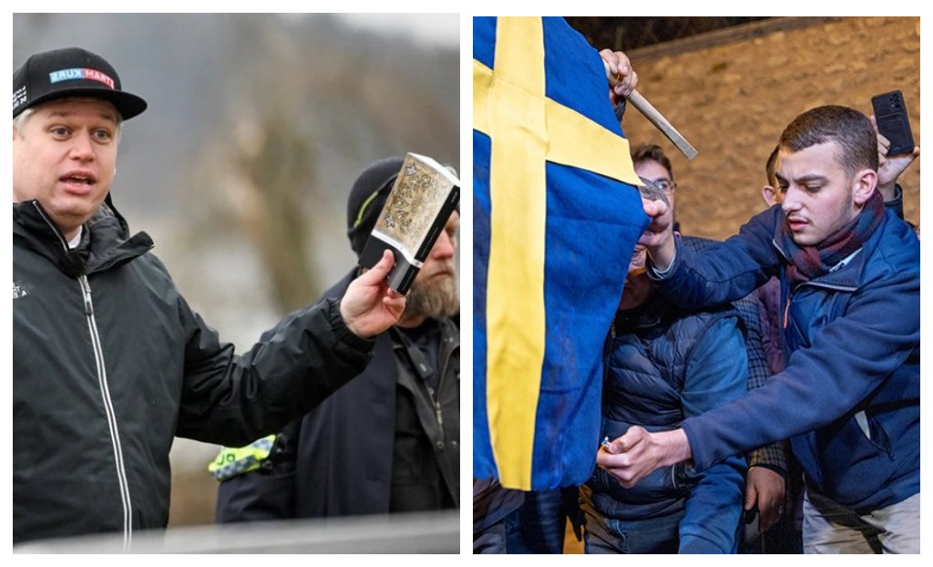 Расмус Палудан, роҳбари ҳизби ифротии “Сахтгир” рӯзи шанбе, 21-уми январ, дар назди сафорати Туркия дар Стокголм, зимни баргузории як ҳамоиши эътирозӣ алайҳи сиёсати муҳоҷират, нусхаи китоби Қуръонро оташ зад.