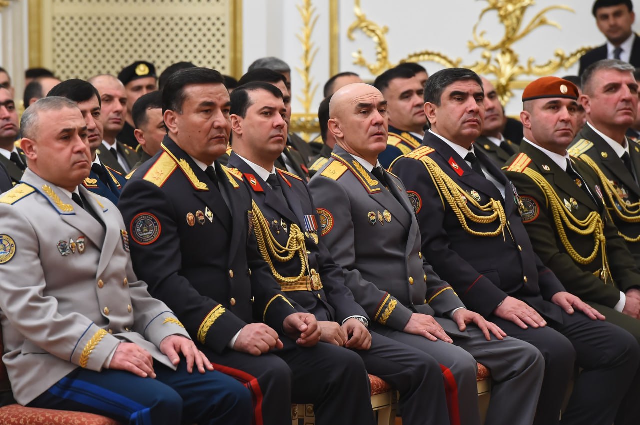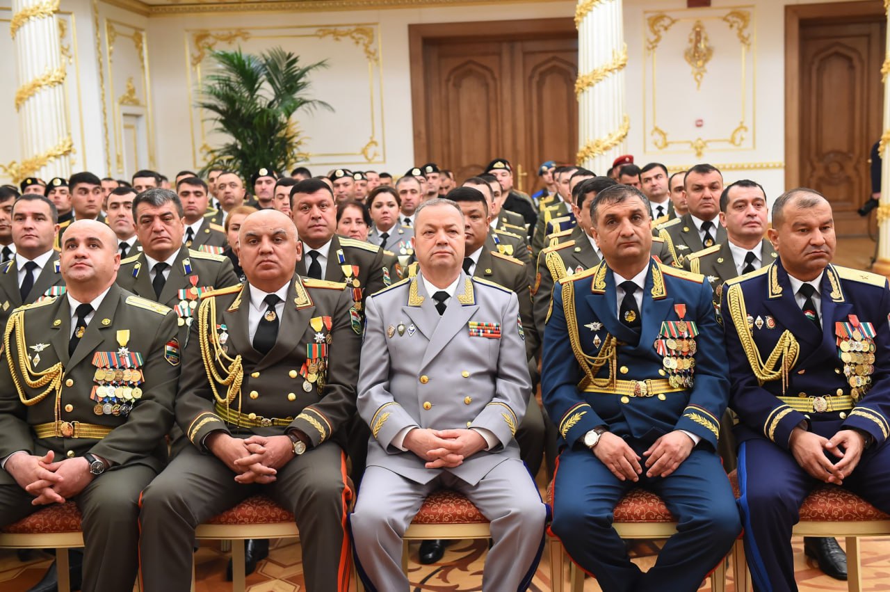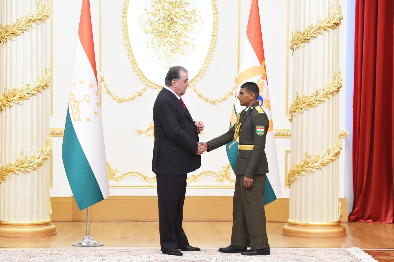 Хадамоти матбуотии президент менависад, хизматчиёни низомии Қувваҳои мусаллаҳ ва кормандони мақомоти ҳифзи ҳуқуқ барои хизмати намунавӣ ва саҳми арзанда дар таъмини ҳифзи ҳуқуқҳои конститутсионии шаҳрвандон, мубориза бо ҷинояткорӣ, нигоҳдории тартиботи ҷамъиятӣ, ҳифзи сарҳади давлатӣ ва ҷасорату фидокорӣ бо мукофотҳои давлатӣ ва рутбаҳои навбатии ҳарбӣ сарфароз гардиданд.