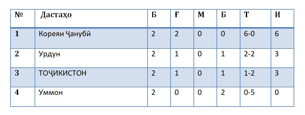 Гуфта мешавад, дар вохӯрии дигари гурӯҳи “С” тими Урдун аз дастаи Кореяи Ҷанубӣ бо ҳисоби 0:2 шикаст хӯрд.