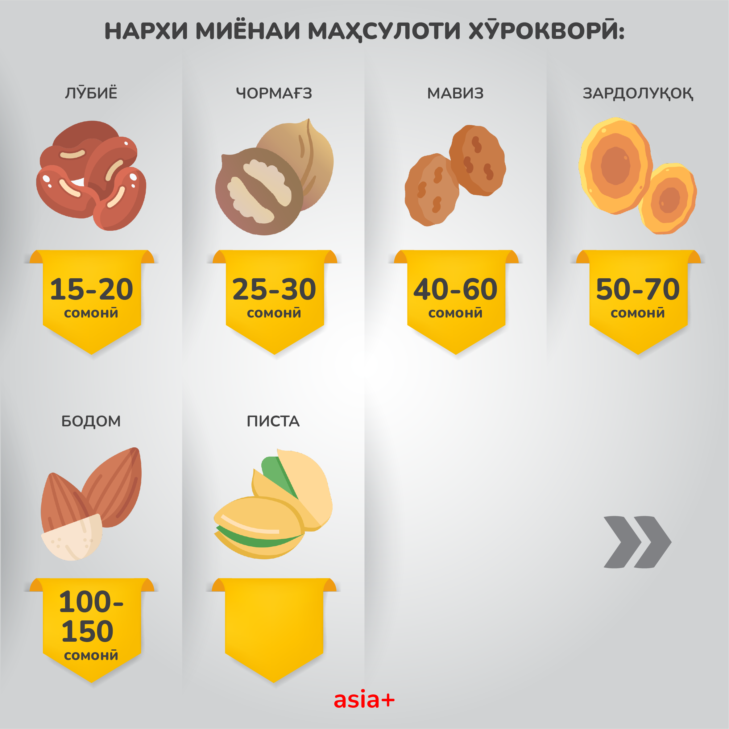 Дар моҳи апрел бошад, ба фурӯш баромадани аввалин бодиринг, пиёз, буттамева ва гелос дар назар дошта шудааст.