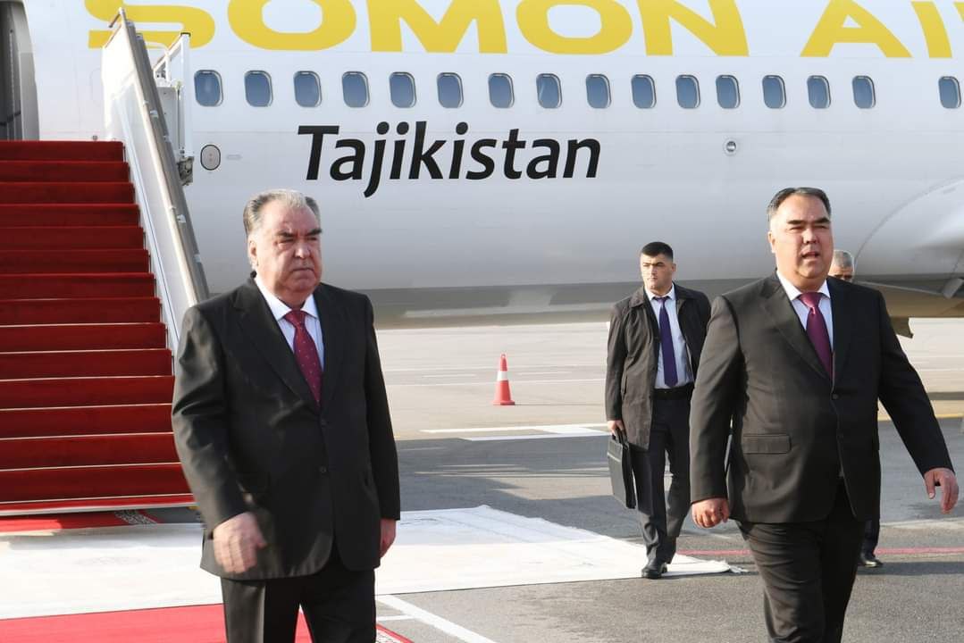 Дар фурудгоҳи шаҳри Хуҷанд раисҷумҳури кишварро Раҷаббой Аҳмадзода, раиси вилояти Суғд ва дигар шахсони расмӣ истиқбол гирифтанд.