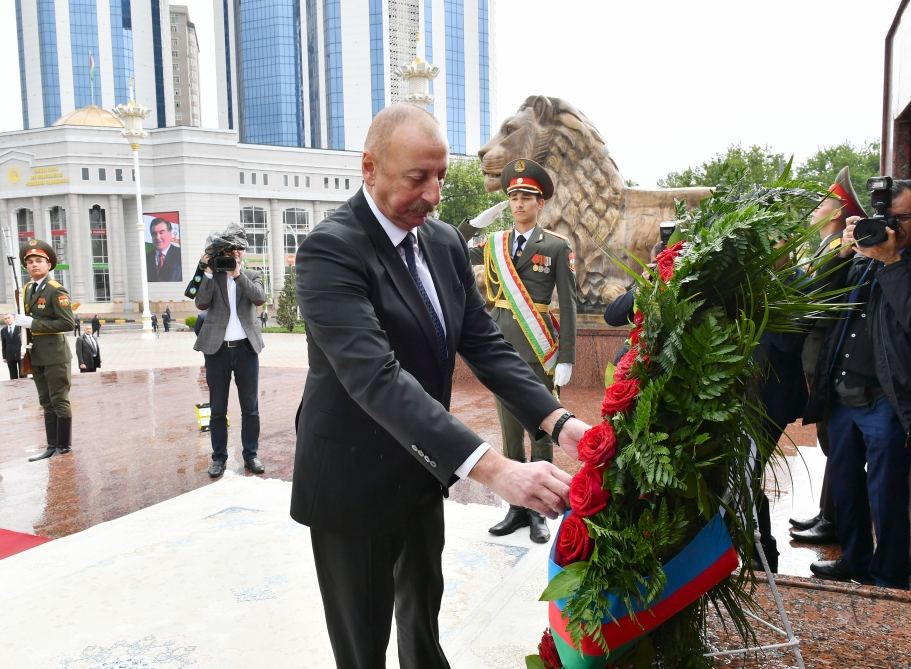 Ҳамчунин, раисиҷумҳури Озарбойҷон бар пояи муҷассамаи Исмоили Сомонӣ, асосгузори давлати тоҷикон гул гузошт.