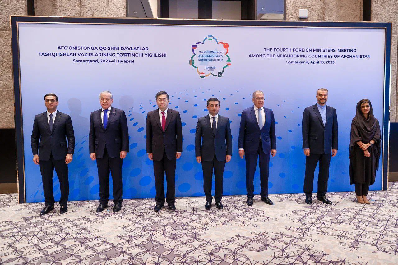 Дирӯз, 13-уми апрел дар Самарқанд нишасти чаҳоруми вазирони кишварҳои ҳамсояи Афғонистон бар иловаи Русия баргузор шуд, ки дар он раҳбарони ниҳодҳои умури хориҷии Тоҷикистон, Ӯзбекистон, Эрон, Чин, Покистон, Русия ва Туркманистон ширкат доштанд.