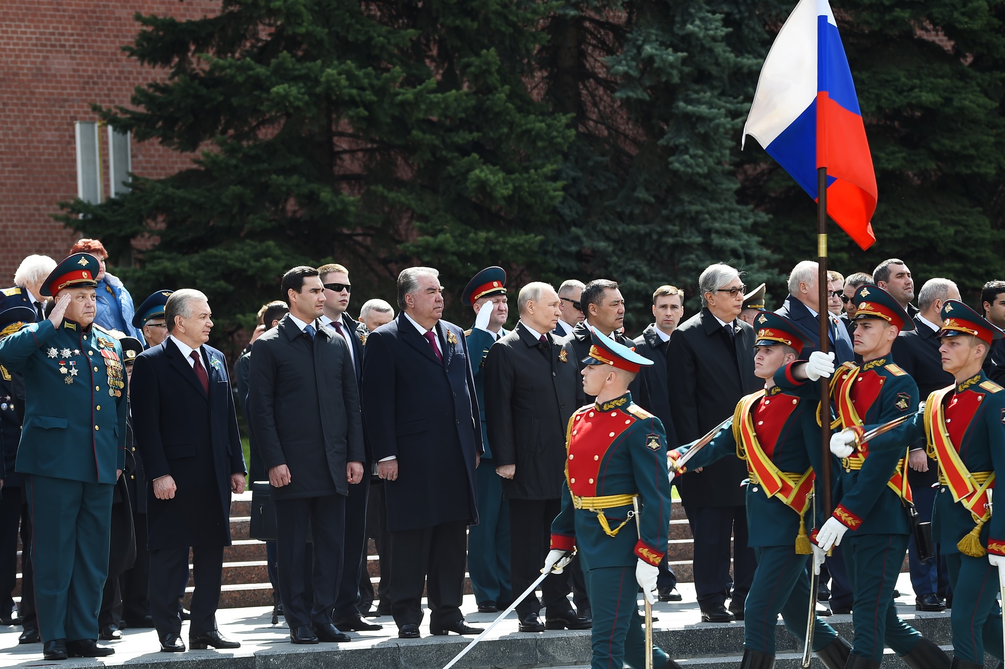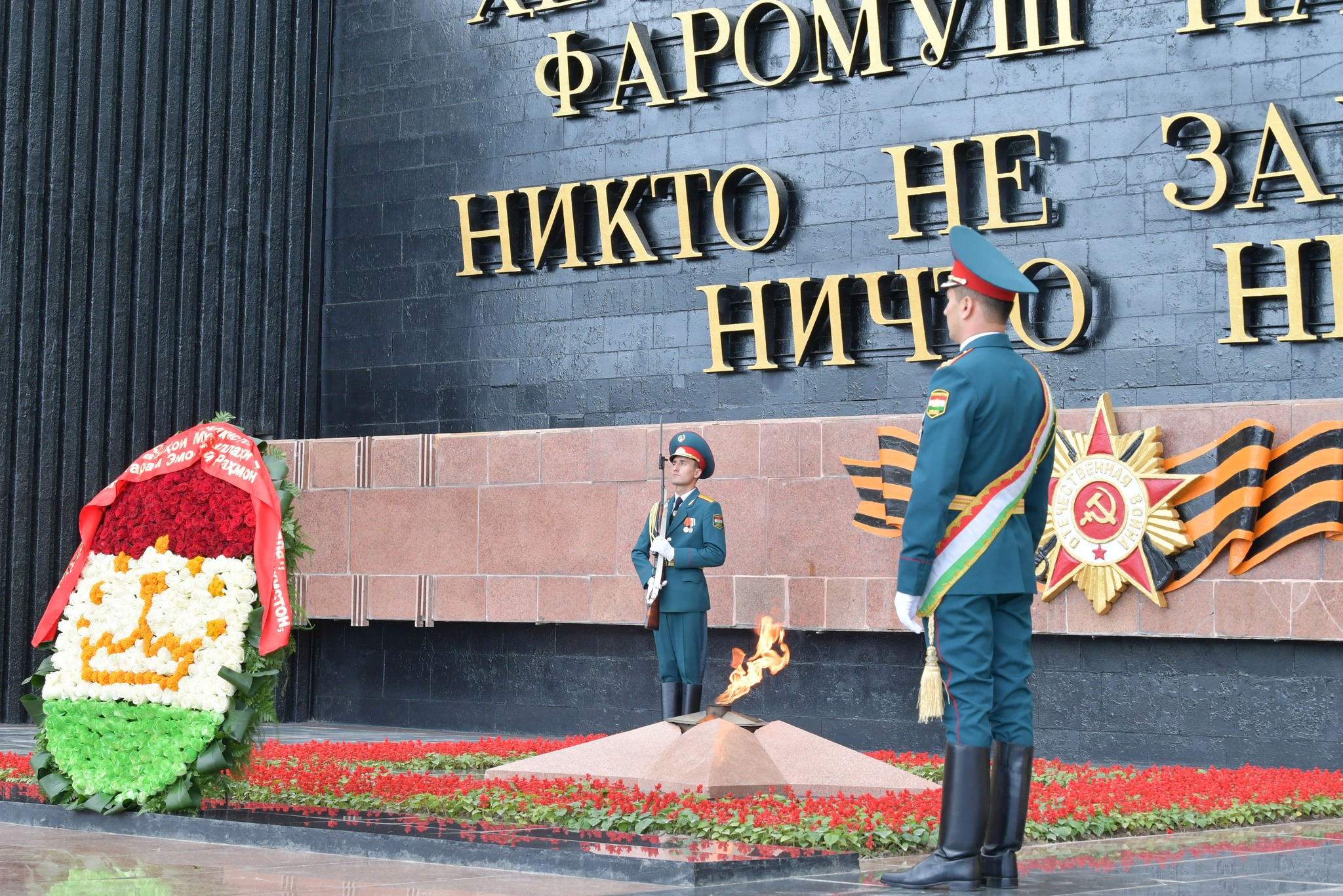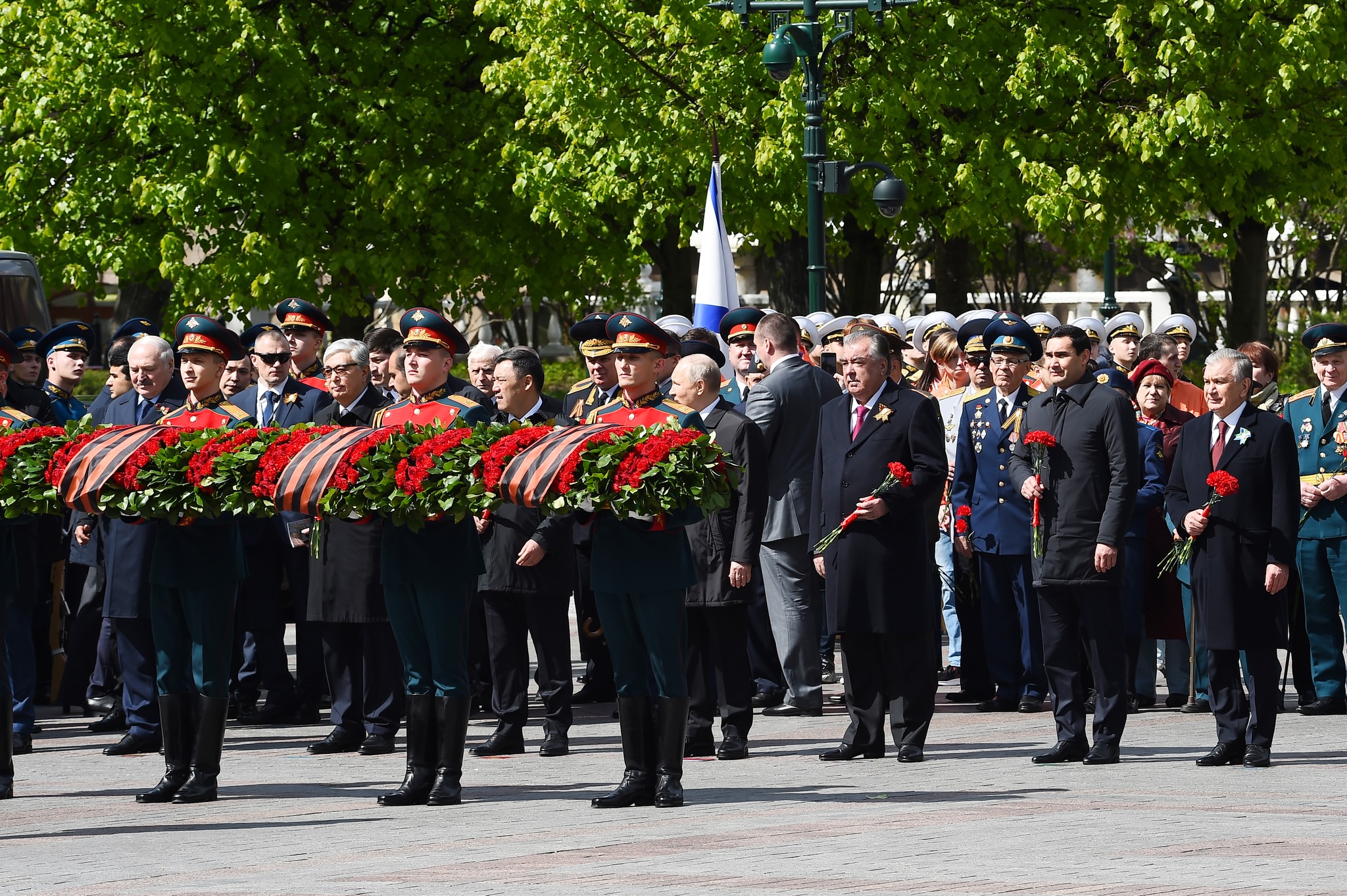 Зикр мегардад, ки баъди анҷоми расми паради низомӣ дар Майдони Сурх президенти Тоҷикистонва сарони давлатҳои дигар кишварҳои иштирокчии чорабиниҳои тантанавӣ дар назди ёдгории аскари номаълум гулчанбар гузошта, хотираи қурбониёни ҷанги харобиовари солҳои 1941-1945-ро гиромӣ доштанд.