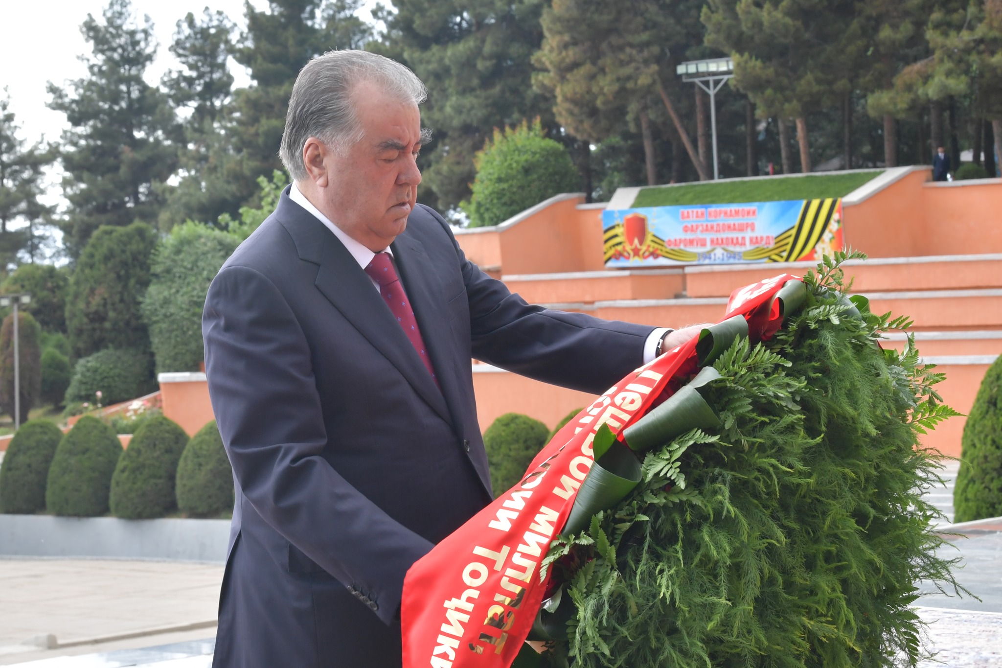 То сафар ба Маскав Эмомалӣ Раҳмон рӯзи 8 май дар маросими гулчанбаргузорӣ ба ифтихори 78-солагии Рӯзи Ғалаба дар Ҷанги Бузурги Ватании солҳои 1941-1945 дар “Боғи Ғалаба”-и шаҳри Душанбе ҳузур дошт.