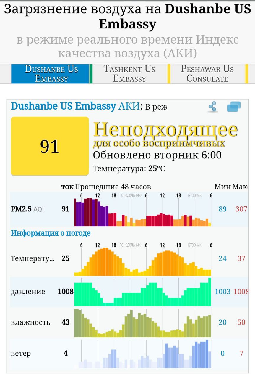 Бо вуҷудуи каме аз байн рафтани чангу ғубор, тибқи маълумоти обуҳавошиносон, дар минтақаҳои ҷануб ва маркази вилояти Хатлон, шарқи ВМКБ, минтақаи Кӯлоб, Ноҳияҳои тобеи марказ ва шаҳри Душанбе ифлосии ҳаво боқӣ мемонад. Барои шахсоне, ки махсусан ҳассосанд, чунин обуҳавои чангу ғуборолуд мувофиқ нест.