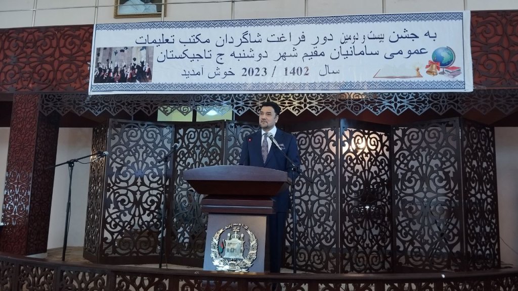 Бояд гуфт, ки ин 22-юмин маросими эҳдои аттестати хатм ба фориғуттаҳсилони мактаби вижаи афғонии “Сомониён” дар Душанбе аст. Ин мактаб аз соли 2005 дар шаҳри Душанбе фаъолият мекунад ва фарзандони муҳоҷирони афғон дар он таҳсил менамоянд.