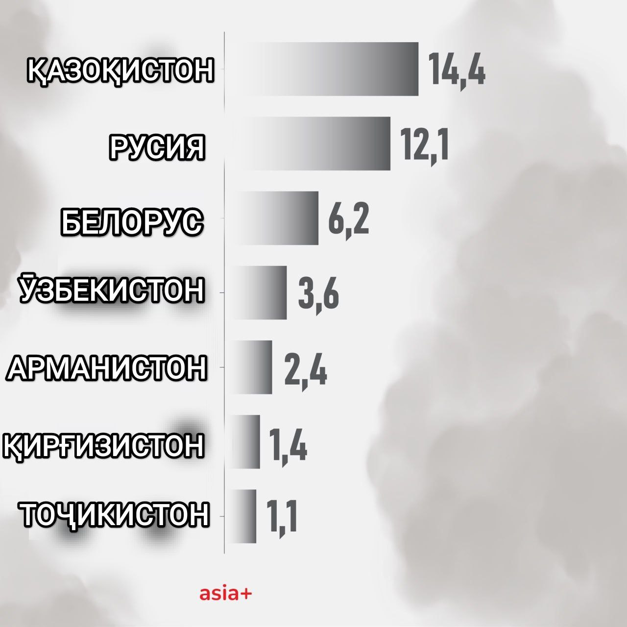 Ба ҳисоби миёна ҳаҷми партобҳои гази карбон дар минтақаи АвруОсиё 9,9 тонна ба ҳар як касро ташкил додааст, ки қариб ду баробар баландтар аз нишондиҳандаи ҷаҳонӣ – 4,7 тонна мебошад.