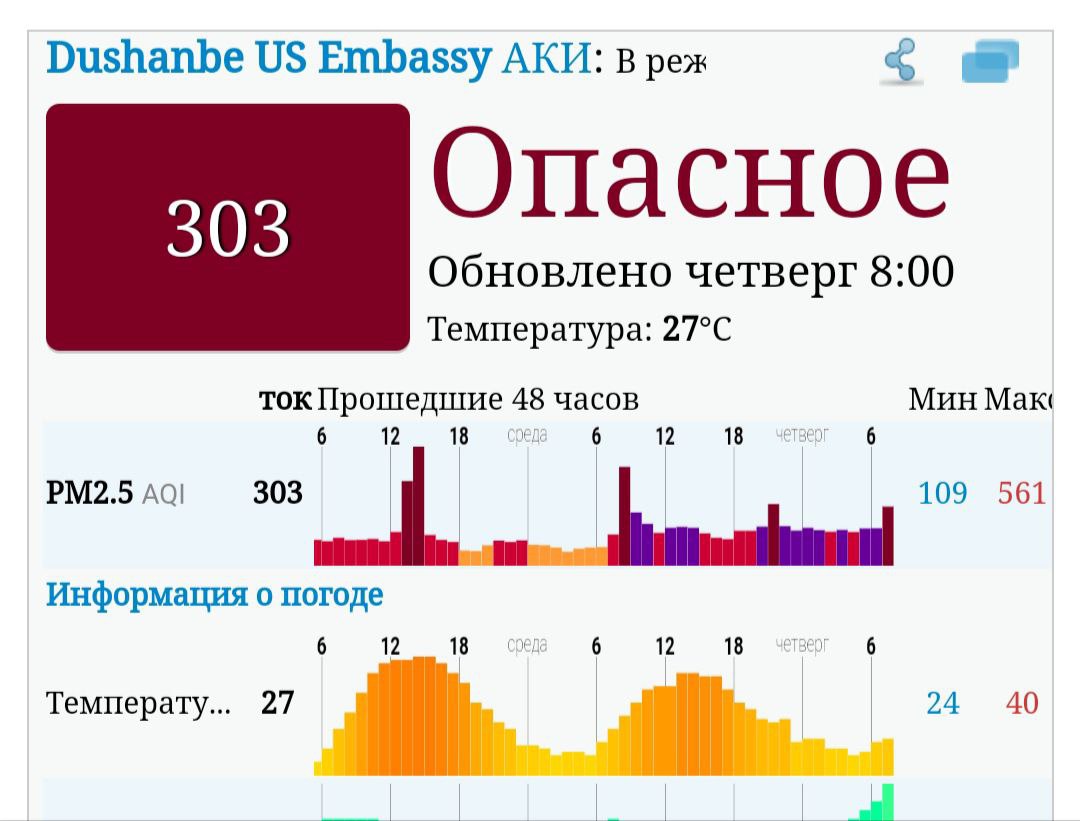 Мисли рӯзҳои пешин рӯзҳои истироҳат низ чангу ғубор дар пойтахт боқӣ мемонад. Ҳарорат аз 38 дараҷа гарм поин намеравад.
