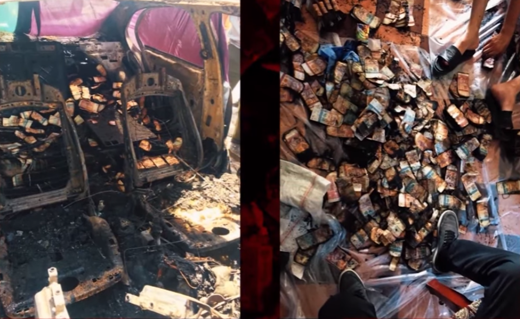 “Бо мақсади пинҳон кардани ҷинояти худ, ӯ ба маблағи боқимонда- ҳудуди 2,5 млн сомонӣ, ки дар дохили халтаҳо дар автомашинааш буданд, бензин рехта, онҳоро оташ мезанад”, – зикр мешавад дар гузориш.