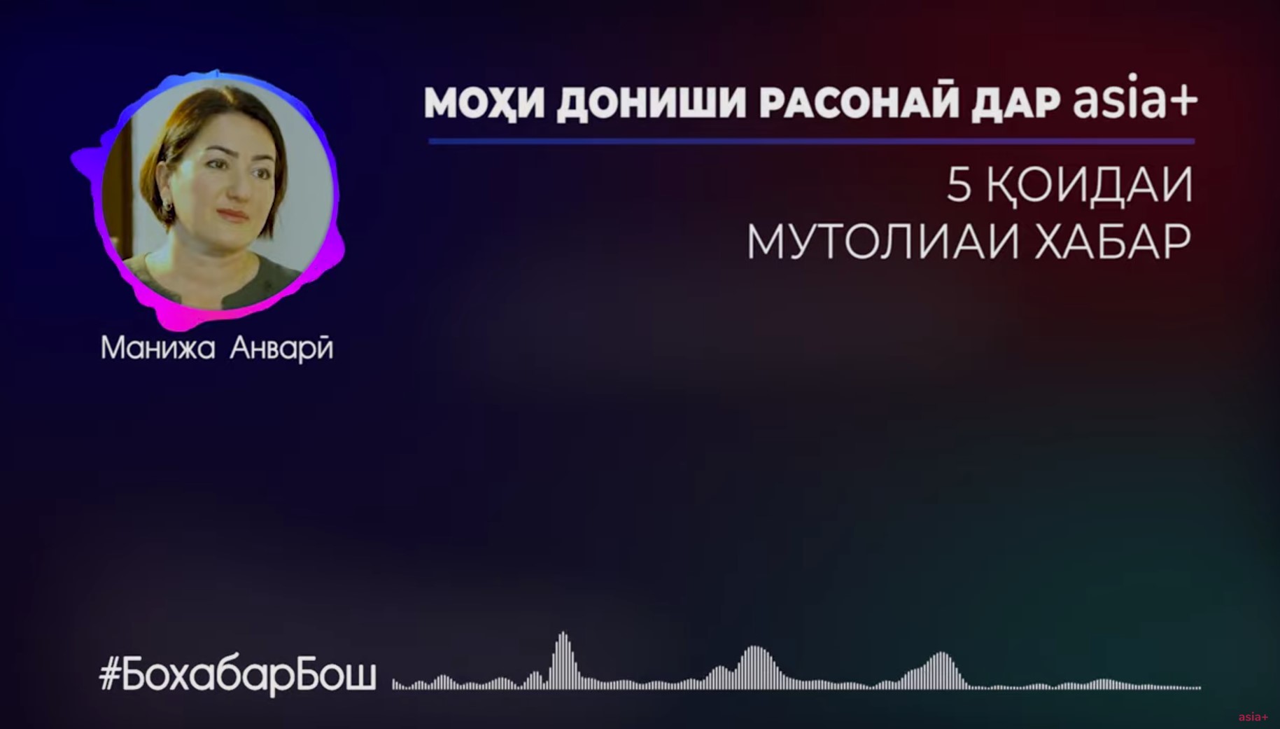 Дар ин барнома мо 5 қоидаи мутолиаи хабарҳоро ба шумо пешниҳод мекунем, то дар уқёнуси хабару паёмҳо дар ВАО ва шабакаҳои иҷтимоӣ ҳақиқат ва бофтаю фейкро аз ҳам фарқ кунед.