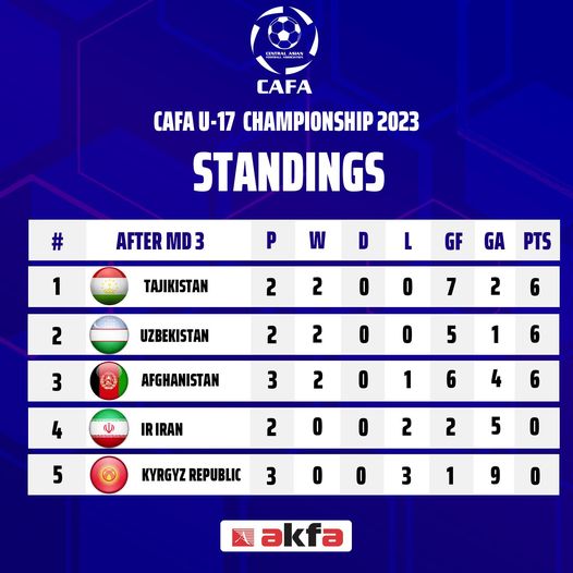 Шоми дирӯз, 23-юми август, мунтахаби наврасони Тоҷикистон дар мусобиқоти қаҳрамонии Ассотсиатсияи футболи Осиёи Марказӣ байни дастаҳои наврасони то 17-сола ё чемпионати CAFA-2023 дастаи Қирғизистонро бо ҳисоби бузурги 4 бар 1 шикаст дод. Дар ин бора Федератсияи футболи Тоҷикистон хабар медиҳад.