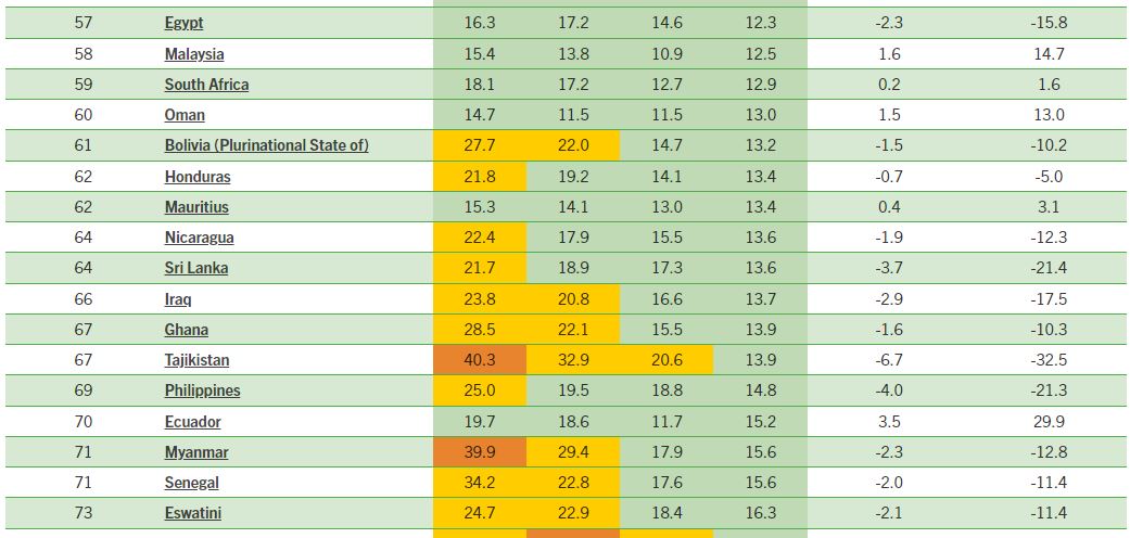 Ёдовар мешавем, ки Шохиси ҷаҳонии гуруснагӣ дар кишварҳое, ки нишондиҳандаҳои зарурӣ дастрас нестанд, инчунин барои баъзе кишварҳо бо даромади баланд ё аҳолии кам ва ё бидуни қаламрави мустақил ҳисоб намешавад.