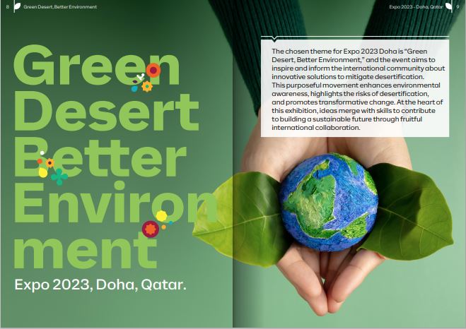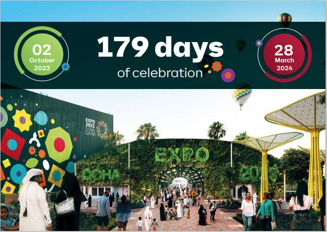 Намоишгоҳи “ДАВҲА-2023” таҳти унвони: “Биёбони Сабз, Муҳити Беҳтар” баргузор мешавад. Ин намоишгоҳ 179 рӯз идома меёбад яъне то 28 марти 2024.