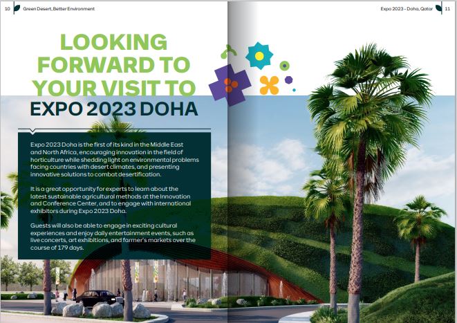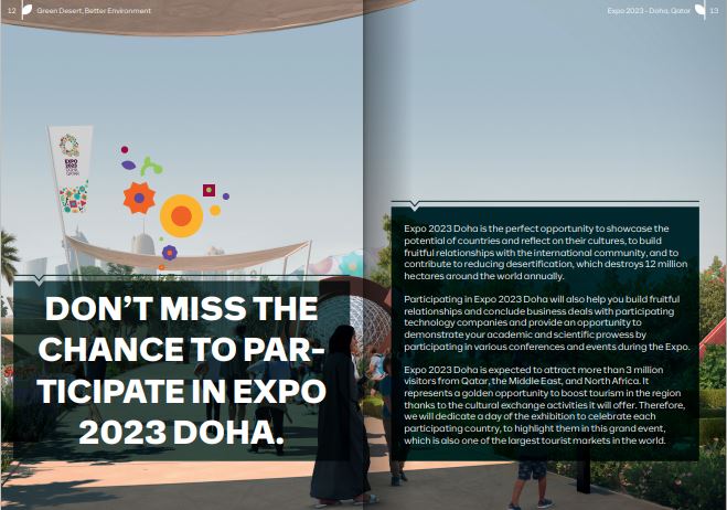Интизор меравад “ЭКСПО 2023” дар Қатар, сатҳи огоҳӣ дар бораи муҳити зист ва мушкилоти биёбоншавиро дар минтақа ва ҷаҳон боло барад.
