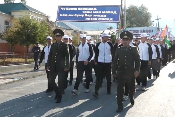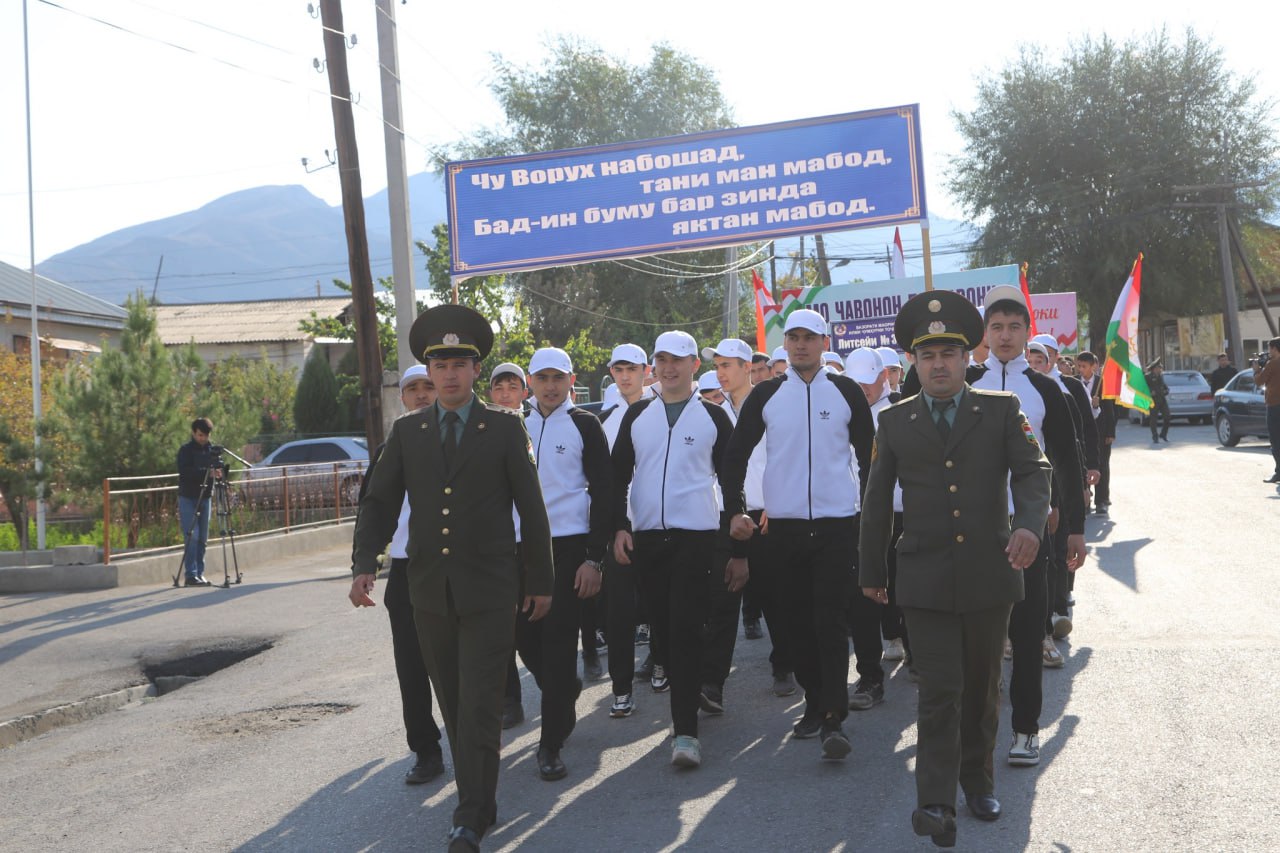 Шаҳру ноҳияҳои Вилояти Мухтори Кӯҳистони Бадахшон низ аз аввалинҳо шуда, нақшаи даъват ба сафи артишро иҷро кардаанд. Ҷавонони синни даъват аз шаҳри Хоруғ ботантана дар фазои идона ба хизмати ҳарбӣ гуселонида шудаанд.