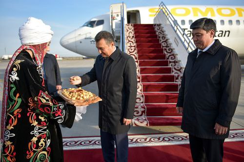 Қоҳир Расулзодаро дар фурудгоҳи Бишкек ҳамтои қирғизаш муовини раиси Девони вазирони Қирғизистон Бақит Торобоев пешвоз гирифт.
