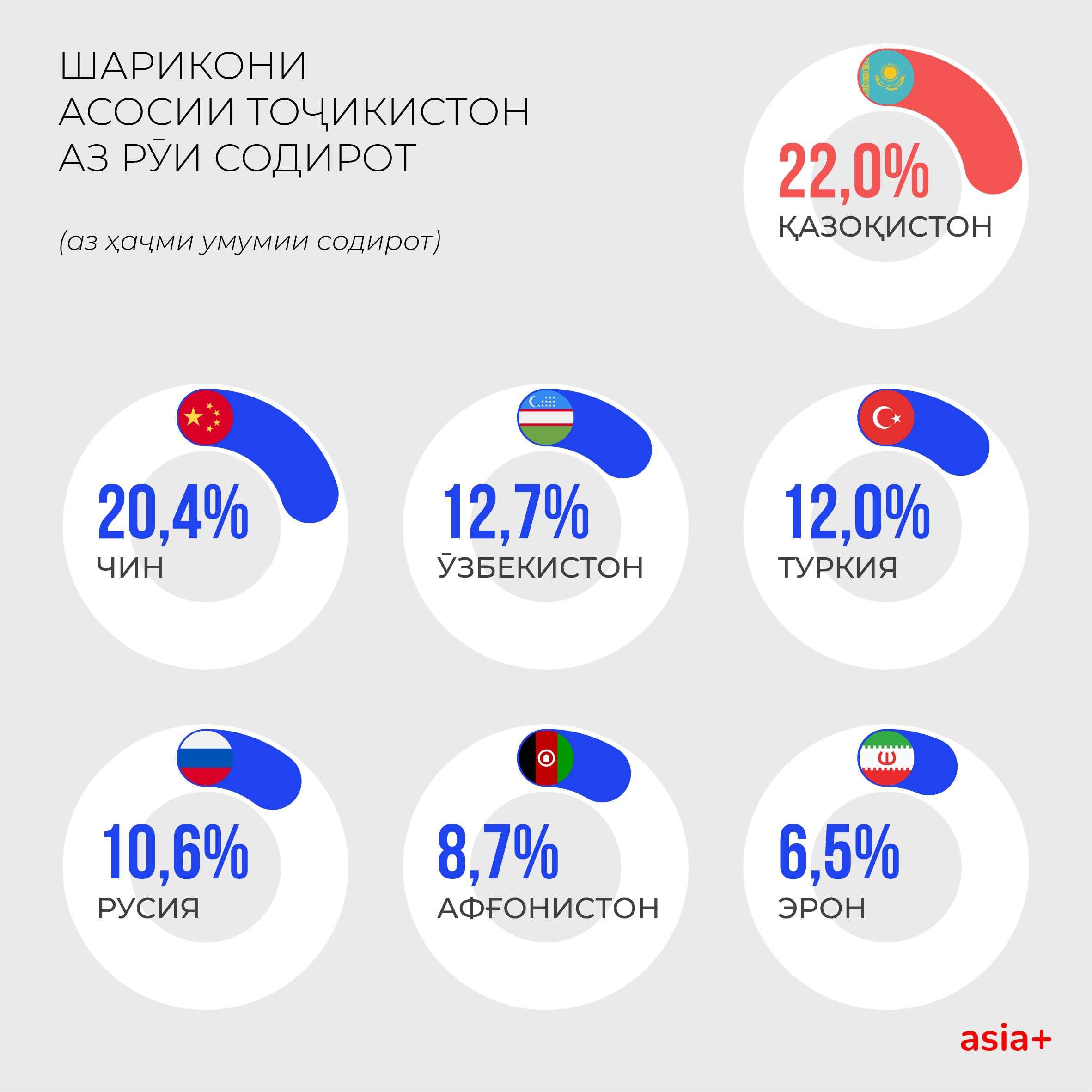 Шарикони асосии Тоҷикистон аз рӯи содирот