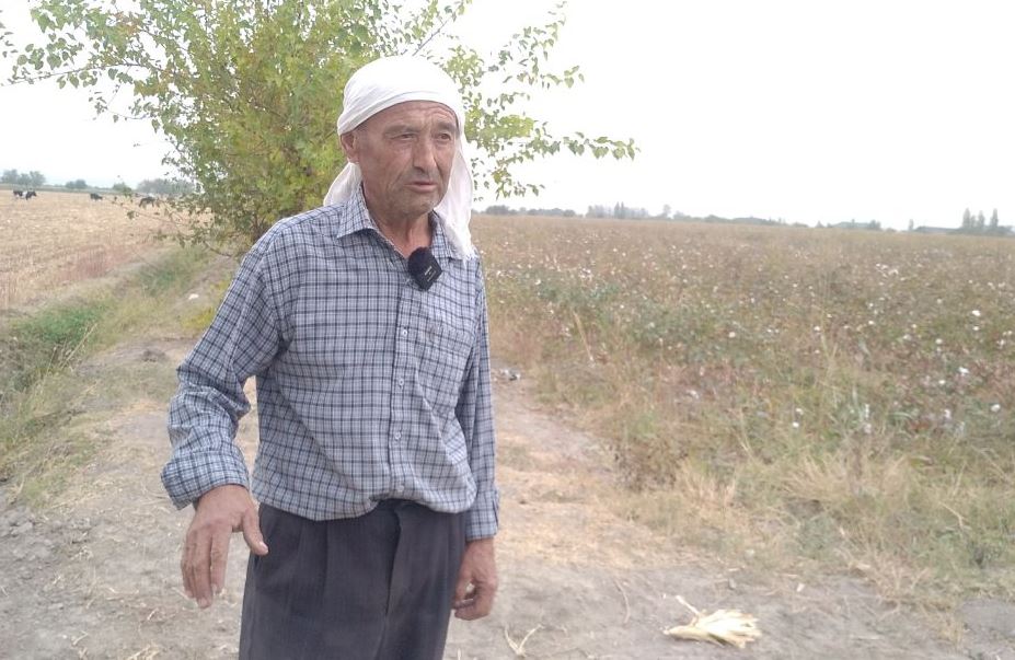 Файзулло Назаров чандин сол аст, ки дар ноҳияи наздимарзии Бобоҷон Ғафурови вилояти Суғд пахтапарваӣ мекунад. Вай мегӯяд, имсол дар 2 га замин пахта корида буд, аммо ба сабаби камобӣ натавонист, ҳосили хуб гирад.