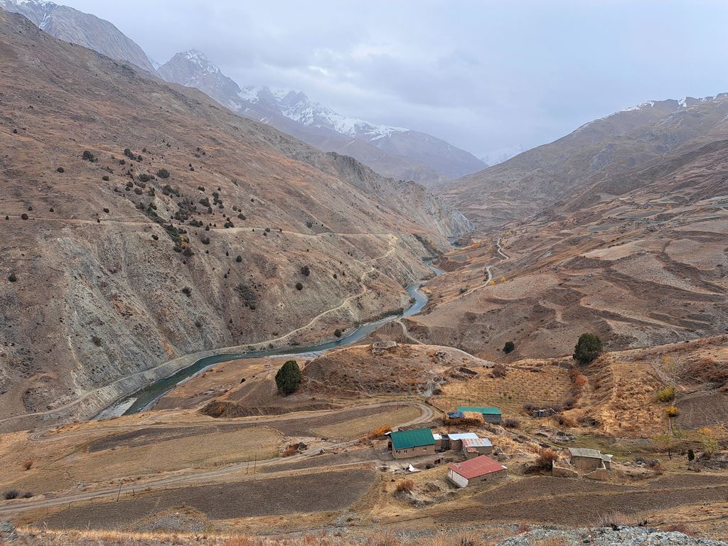 Дараи кӯҳӣ гоҳо он қадар танг аст, ки сангҳои калонро дидан мумкин аст. Онҳо пораҳои ҳалвои азими шикастаро ба хотир меоранд. Дарёи аз пиряхҳо сарчашмагирифта баъзан тезу баъзан ором ҷорӣ мешавад.