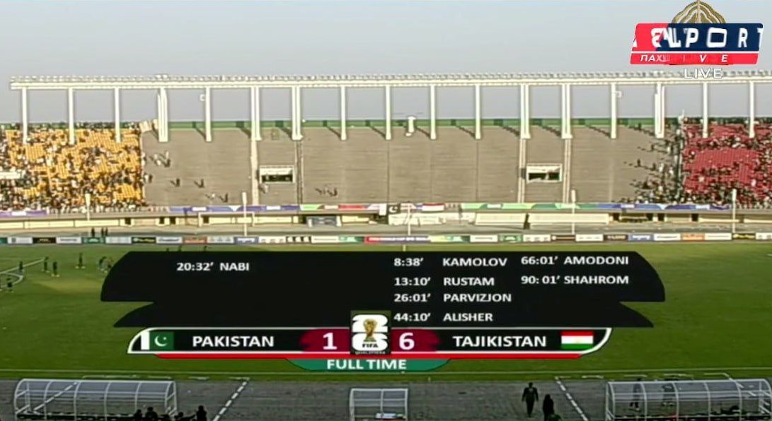 Тими миллии футболи Тоҷикистон дастаи мунтахаби Покистонро дар доираи марҳилаи интихобии Ҷоми ҷаҳон оид ба футбол-2026 бо ҳисоби бузурги 6 – 1 мағлуб карда, соҳиби се хол ва муваққатан, то анҷоми бозии дигари гуруҳ, садрнишини гуруҳи “G” шуд.