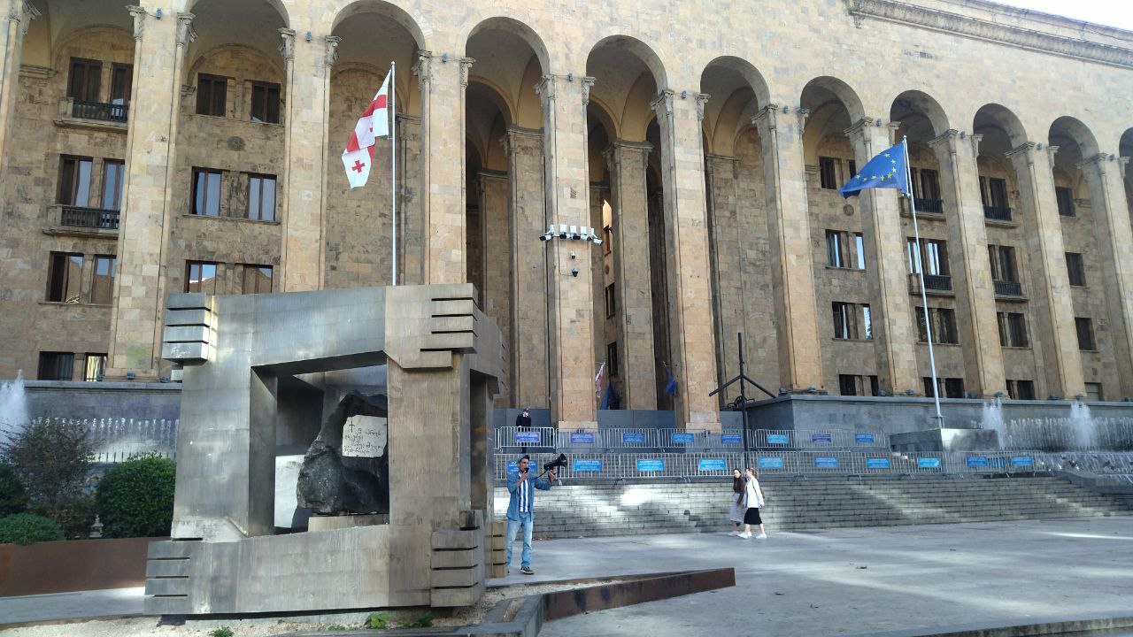 Ин маротиб дар назди бинои парлумон касе набуд ва рӯҳияи эътирозӣ ҳам дида намешуд. Танҳо парчами Иттиҳоди Аврупо ва худи Гурҷистон парафшон буд. Як ҷавон тавассути баландгӯяк бо забони гурҷӣ эътироз мекард ва на пулис, на муҳофизи бино ва на сокинон ба ӯ аҳамият намедоданд.