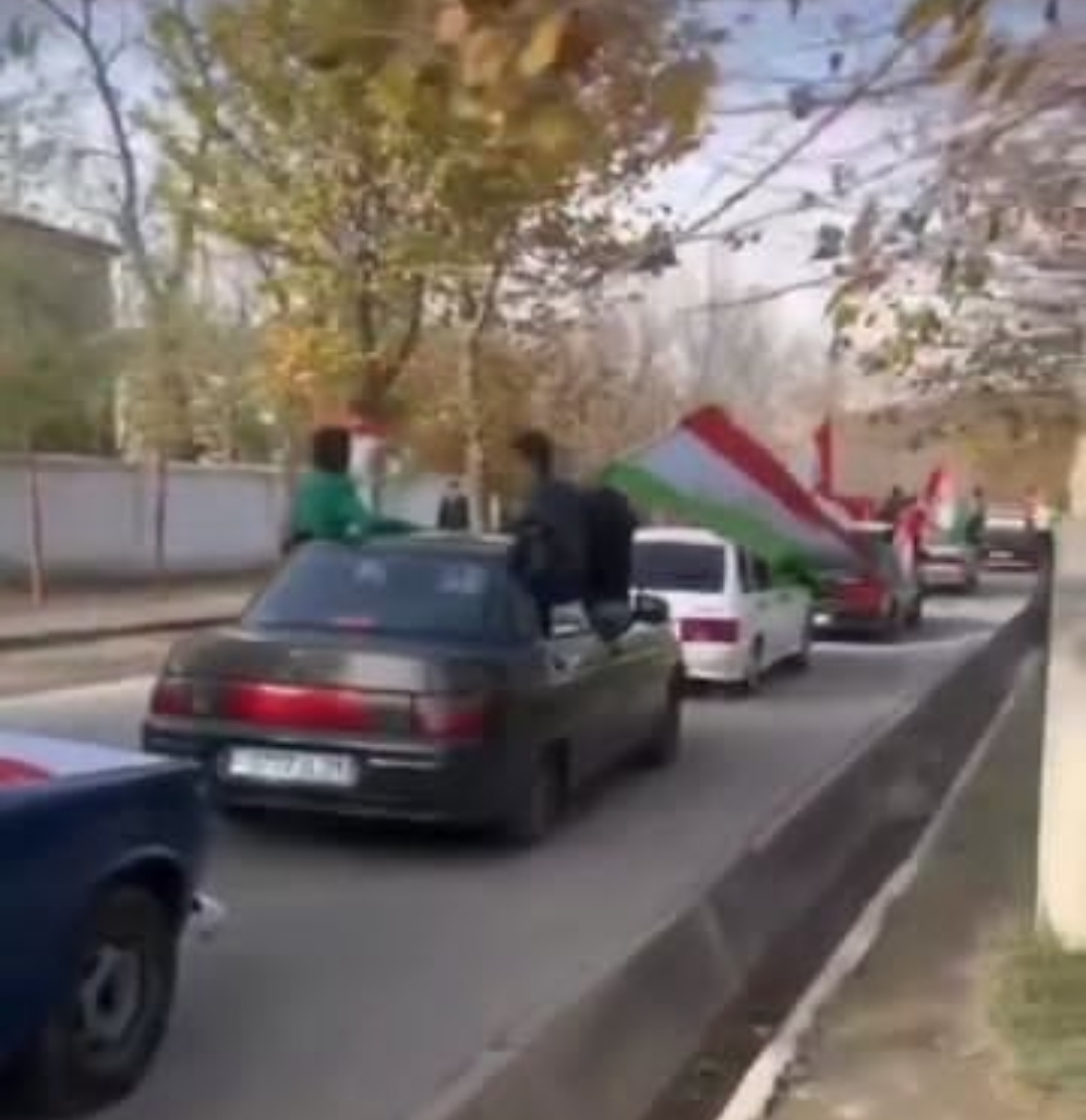 Дар наворе, ки дар шабакаҳои иҷтимоӣ паҳн гардид, дида мешуд, ки як гурӯҳ наврасон тавассути қатори мошинҳо ҳаракат карда, дар даст парчами Тоҷикистон доштанд ва паҳлӯи воситаҳои нақлиёт ба берун баромада, доду фиғон мекарданд.