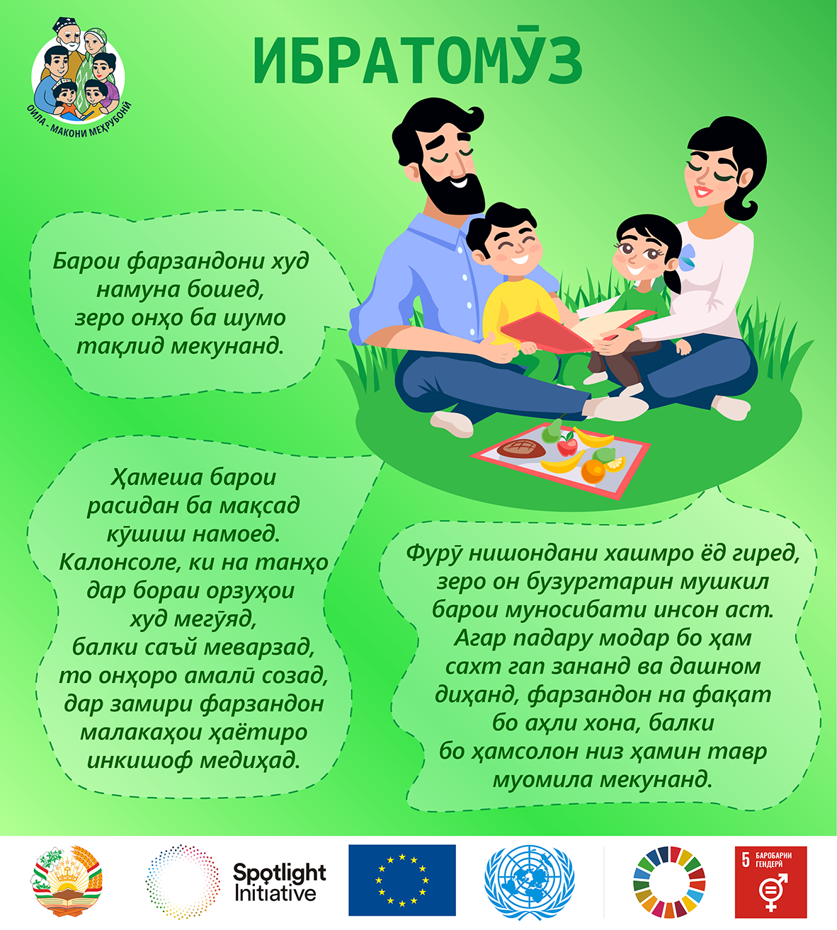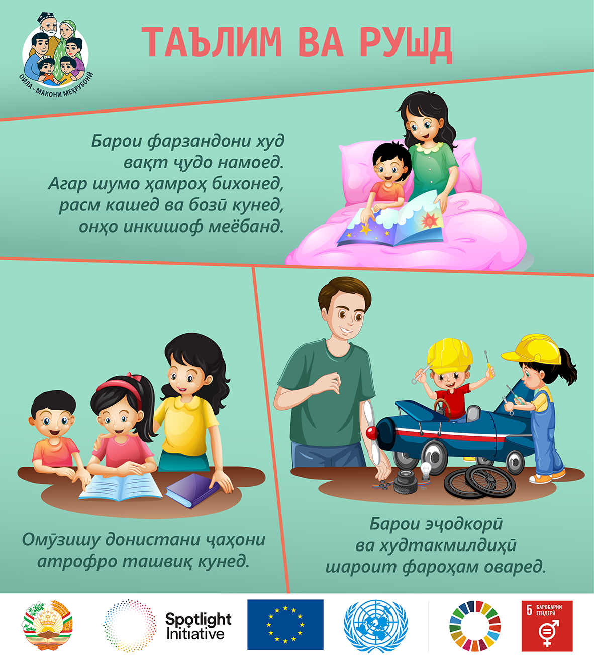 Ин мақола бо ҳамоҳангсозии Кумитаи кор бо занон ва оилаи назди Ҳукумати Ҷумҳурии Тоҷикистон дар доираи Ташаббуси муштараки Иттиҳоди Аврупо ва Созмони Милали Муттаҳид «Нури рӯшноӣ» таҳия гардид.