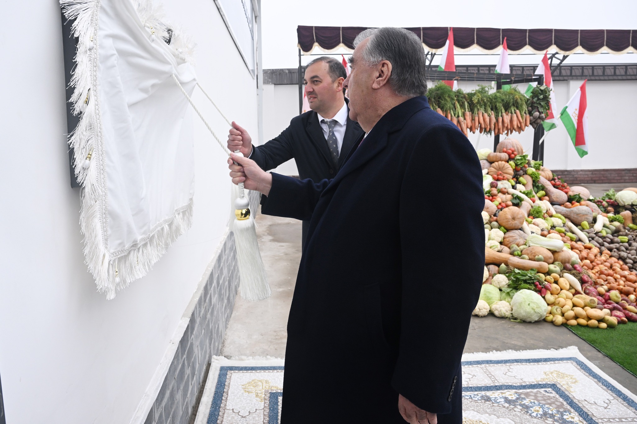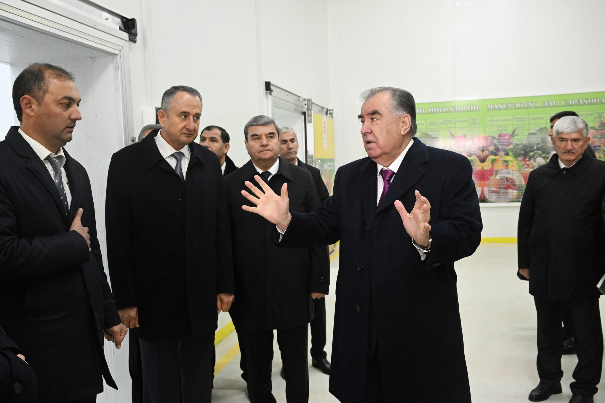 Дар идома Эмомалӣ Раҳмон дар деҳоти Файзи Истиқлоли ноҳияи Кӯшониён сардхонаи муосири ҶДММ маҳдуди “Сомон Агро Саноат”-ро боз кард, ки он имкони дар шароити хуб нигоҳубини то 2 ҳазор тонна меваю сабзавотро доро мебошад.