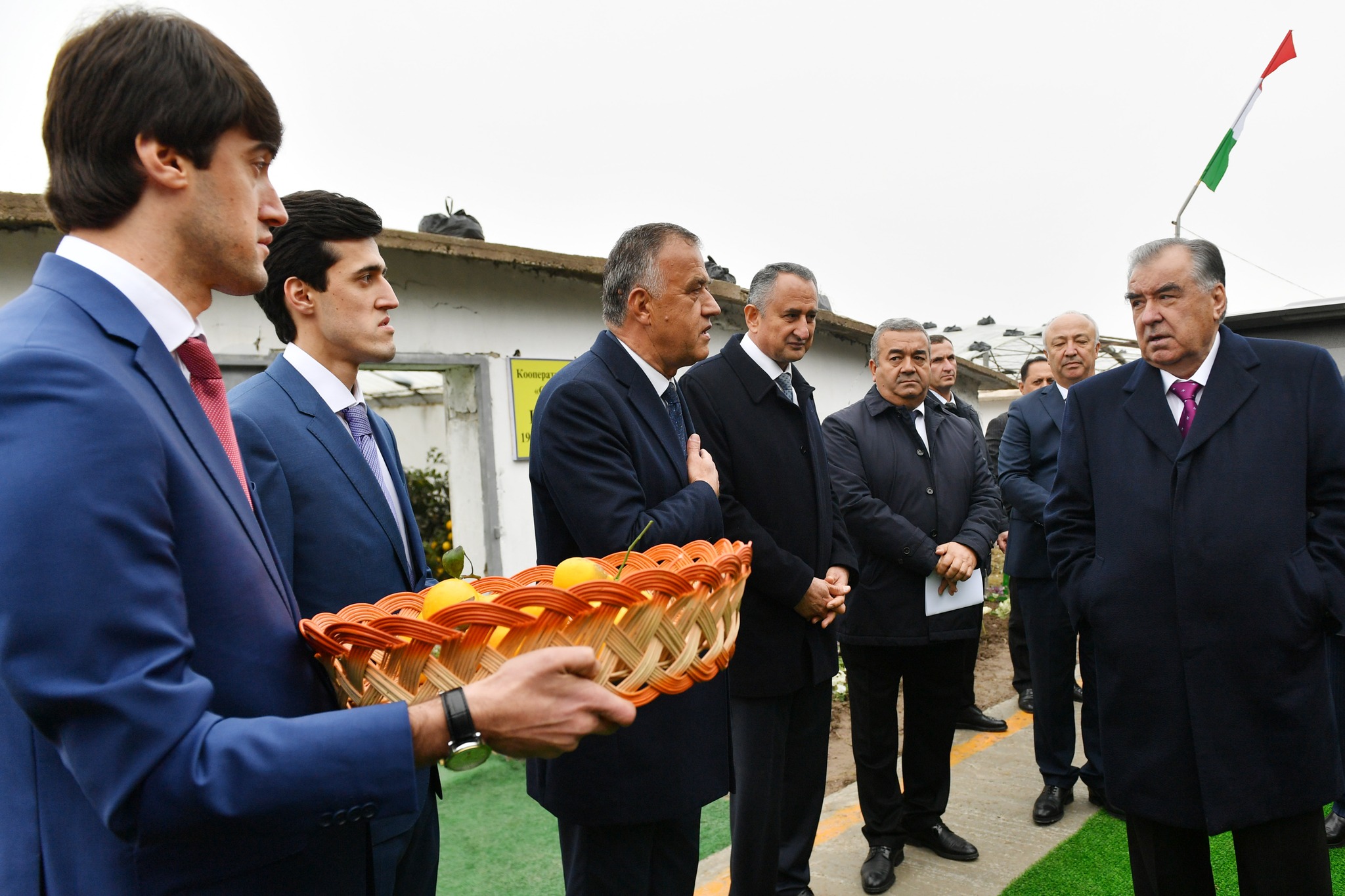Президенти кишвар дар ноҳияи Кӯшониён аз гармхонаи парвариши лимон дар Кооперативи истеҳсолии “Сомон-Бохтар” дар ноҳияи Кӯшониён боздид кард.
