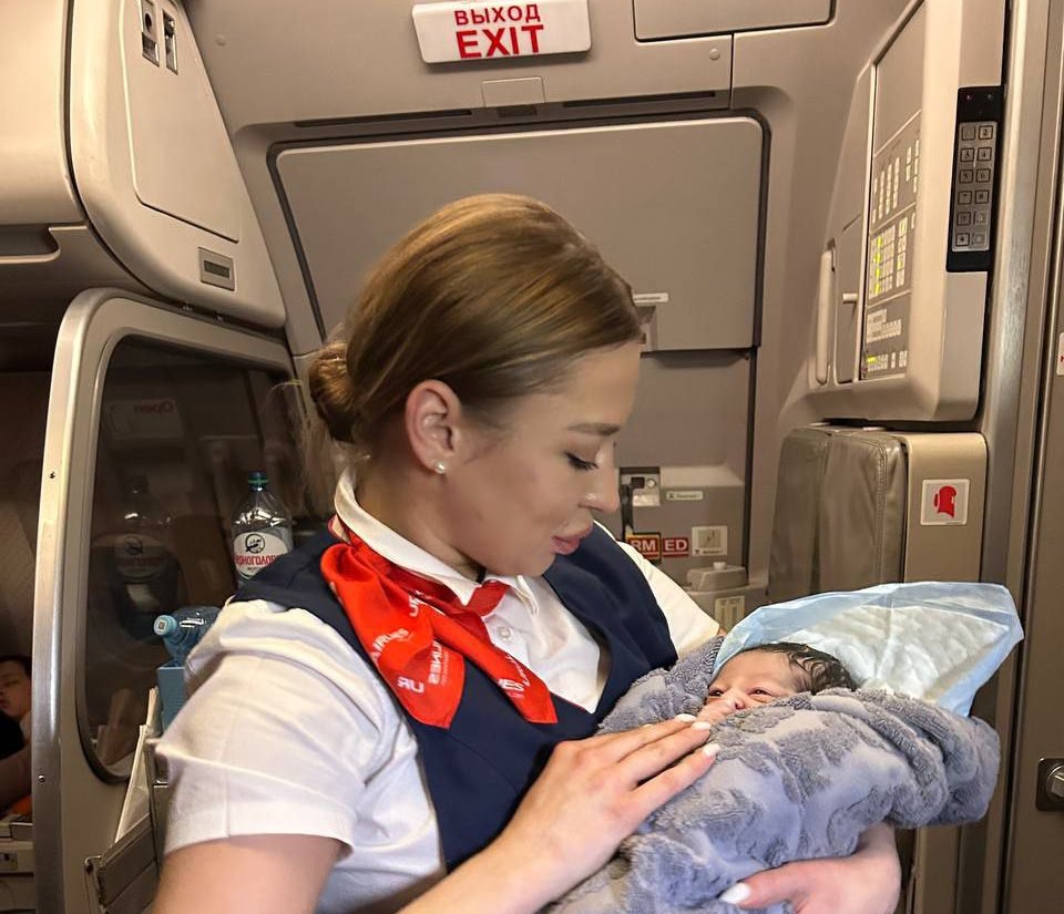 "Рӯзи 10 январ дар хатсайри U6-2441 аз фурудгоҳи Жуковскийи Маскав ба Душанбе духтарча таваллуд шуд. <…> Дарҳол пас аз ба ҳаво баланд шудани ҳавопаймо, як зан ба доду фарёд оғоз кард. Як корманди ҳайати хидматрасонии ҳавопаймо собиқ фелдшер Надежда Ивакина ва яке аз мусофирзанон ҳамшираи шафқат Мадина ба кумаки ӯ шитофтанд. <…> Зани ҳомиладорро ба қатори иборат аз се курсӣ ҷой карда, барои таввалуд таҷҳизоти зарурӣ омода карданд".