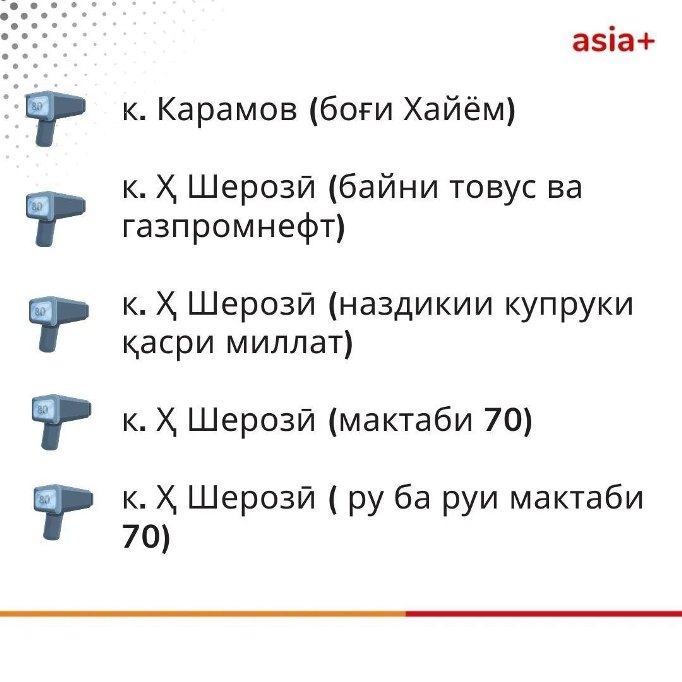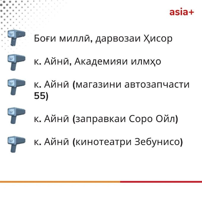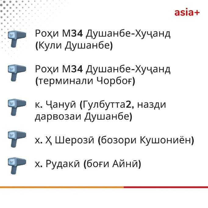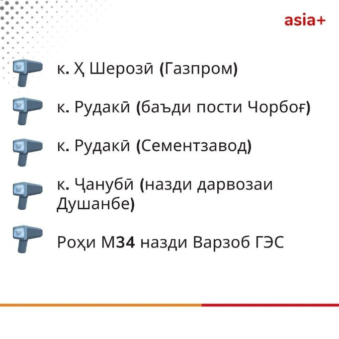 Давоми чанд рӯзи охир дар шабакаҳои иҷтимоӣ рӯйхати чанд макони пойтахт ва гирду атрофи он нашру паҳн гардид, ки ба гуфтаи корбарон, дар онҳо суръатёби худкор насб мешавад ва қоидавайронкунии ронандагонро ба навор гирифта, дар як пойгоҳ ҷамъ меорад.
