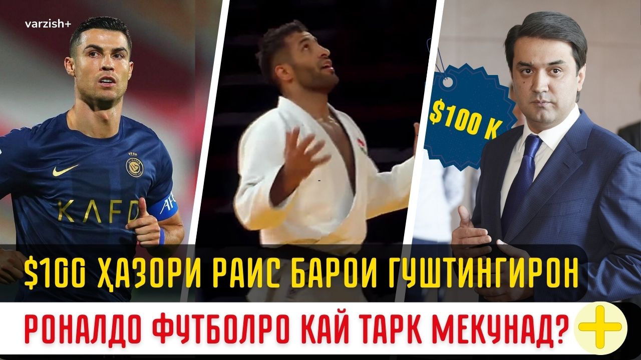 Криштиану Роналду корномаашро ба анҷом мерасонад? $100 ҳазор барои Ҷоми раиси шаҳри Душанбе оид ба гуштини миллӣ – барои он киҳо мубориза мебаранд? Қуракашии Лигаи олии футбол – акнун 12 бошгоҳ. Мавқеъи ҷудокорони тоҷик дар радабандии олимпӣ то куҷо рафт?