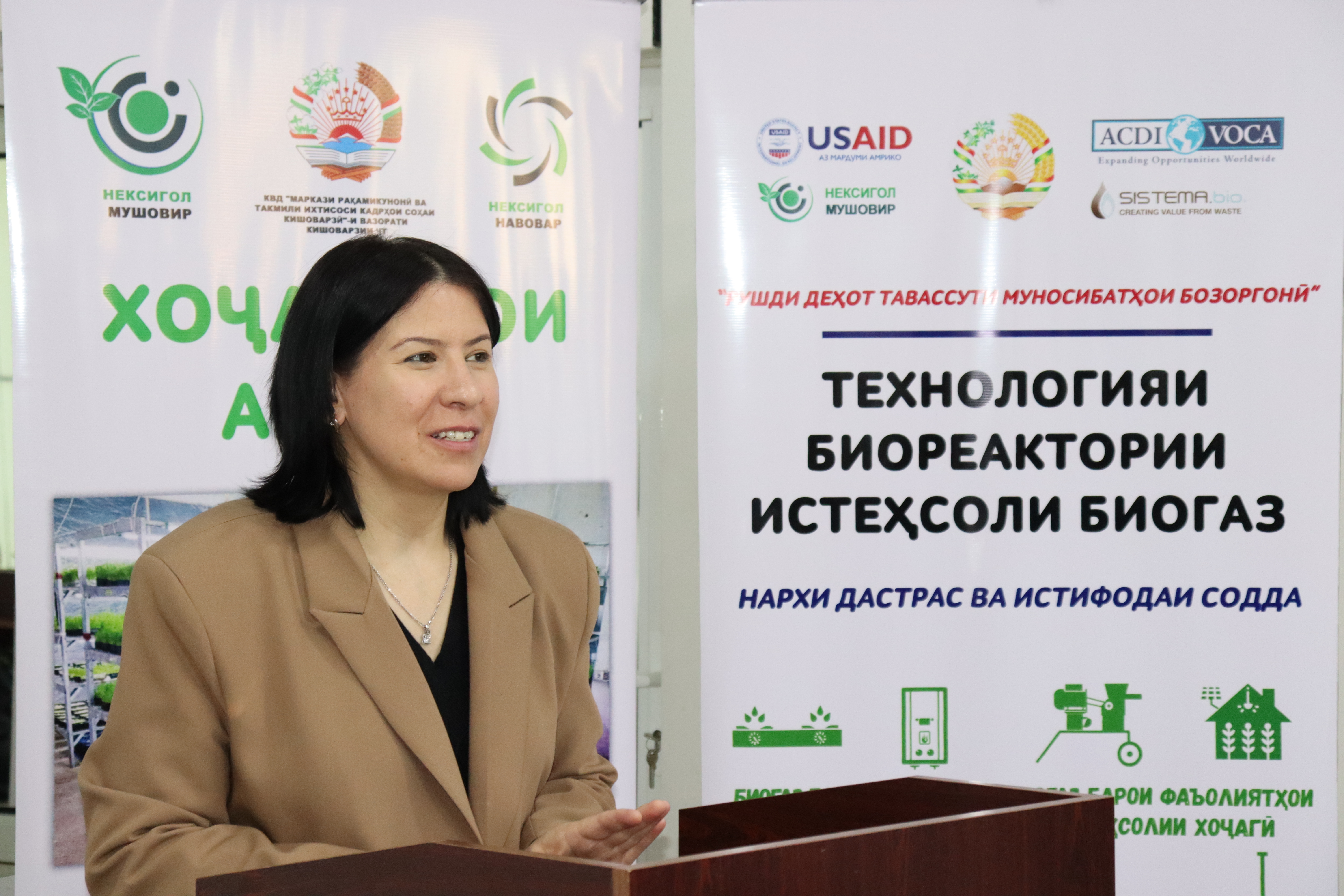 Дар чорабинӣ намояндагони Вазорати кишоварзии Тоҷикистон, USAID дар Тоҷикистон, ACDI/VOCA ва ҳукумати вилояти Суғд иштирок доштанд. Қисмати муҳими чорабинӣ бастани созишномаи ҳамкорӣ байни ширкати байналмиллалии Sistema.Bio, ки ба истеҳсоли таҳҷизоти биогаз машғул аст ва “Нексигол Мушовир”, ташкилоти машваратии кишоварзӣ дар Тоҷикистон, оид ба ҷорӣ намудани технологияҳои инноватсионии биореакторӣ барои истеҳсоли биогаз буд.