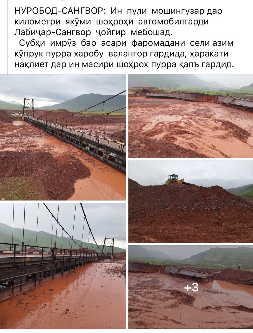 Боз як пули автомобилгард дар ноҳияи Нуробод вайрон шуд. Ҳаракати нақлиёт тариқи ин пул, ки дар роҳи мошингарди Лабиҷар – Сангвор воқеъ аст, комилан баста шуд.