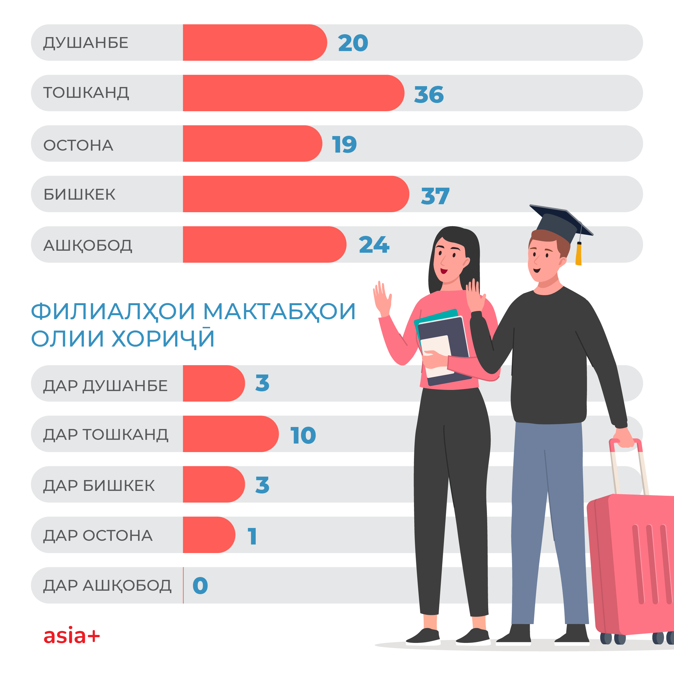 Шумори мактабҳои таҳсилоти олиро дар пойтахти кишварҳои минтақа муқоиса кардем.
